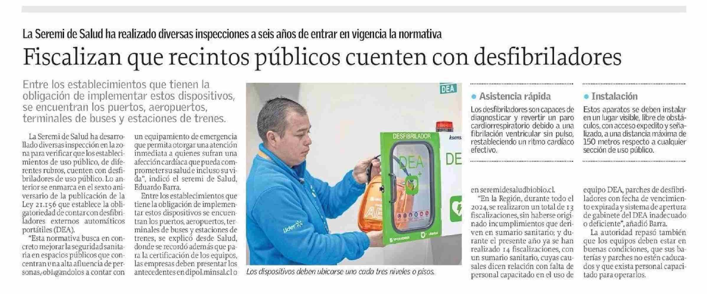 Fiscalizan que recintos públicos cuenten con desfibriladores 01-06-2025 El Sur |