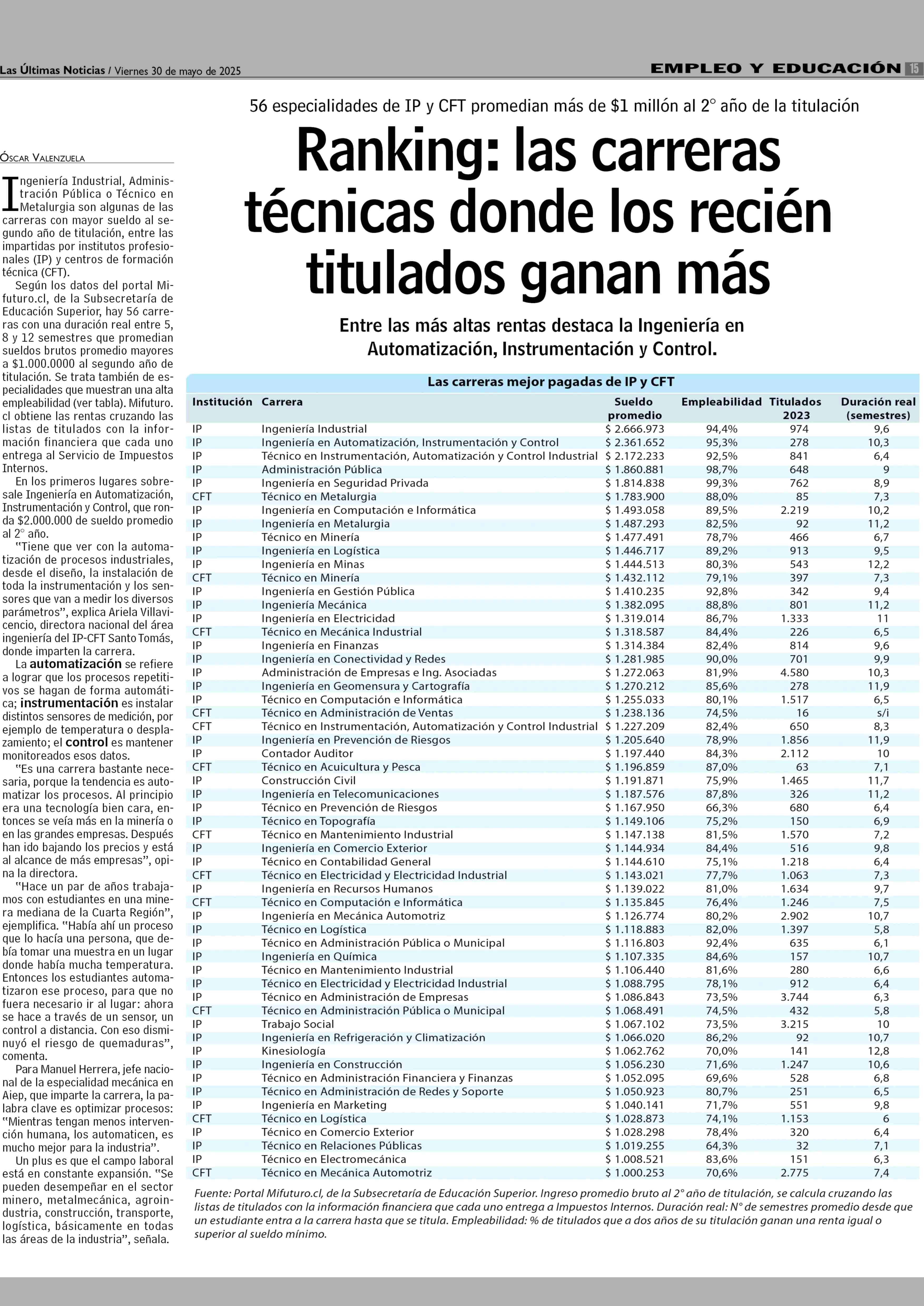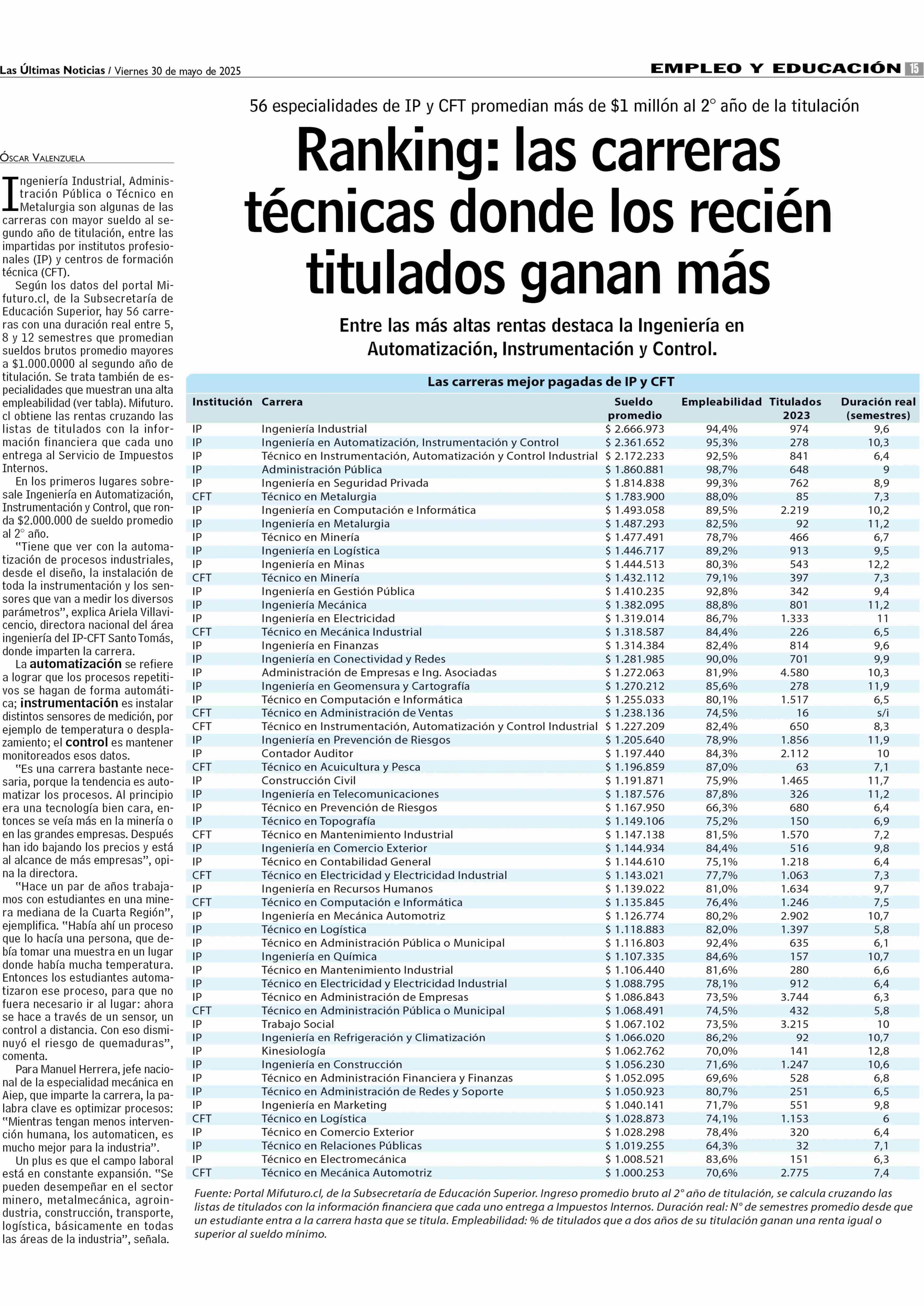 Título: Ranking: las carreras técnicas donde los recién titulados ganan más