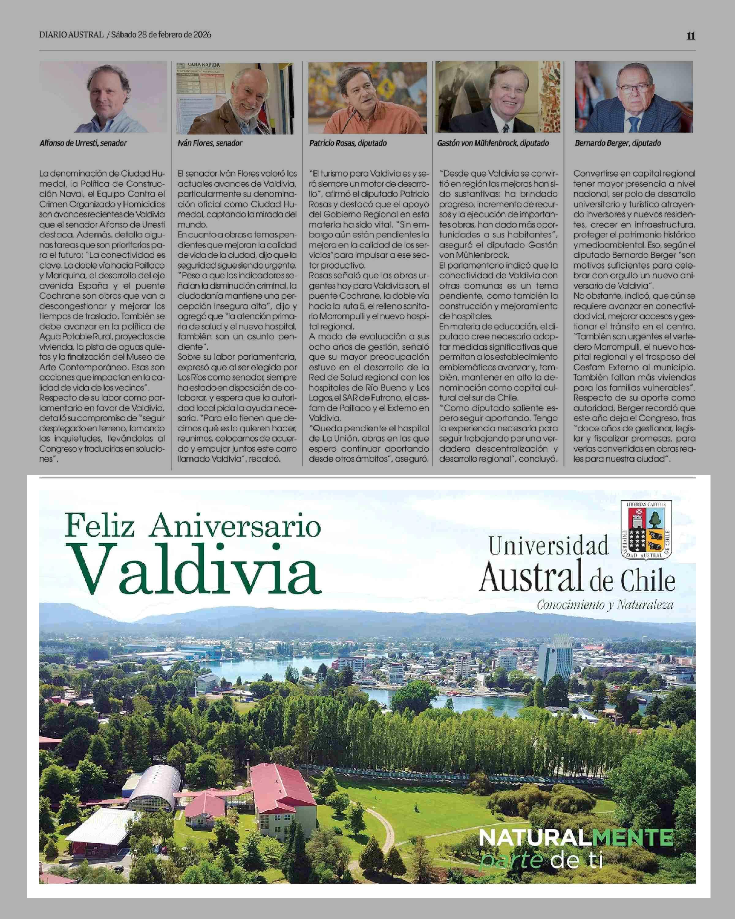 Aviso Universidad: Universidad Austral de Chile 28-02-2026 Diario Austral Región de Los Ríos |