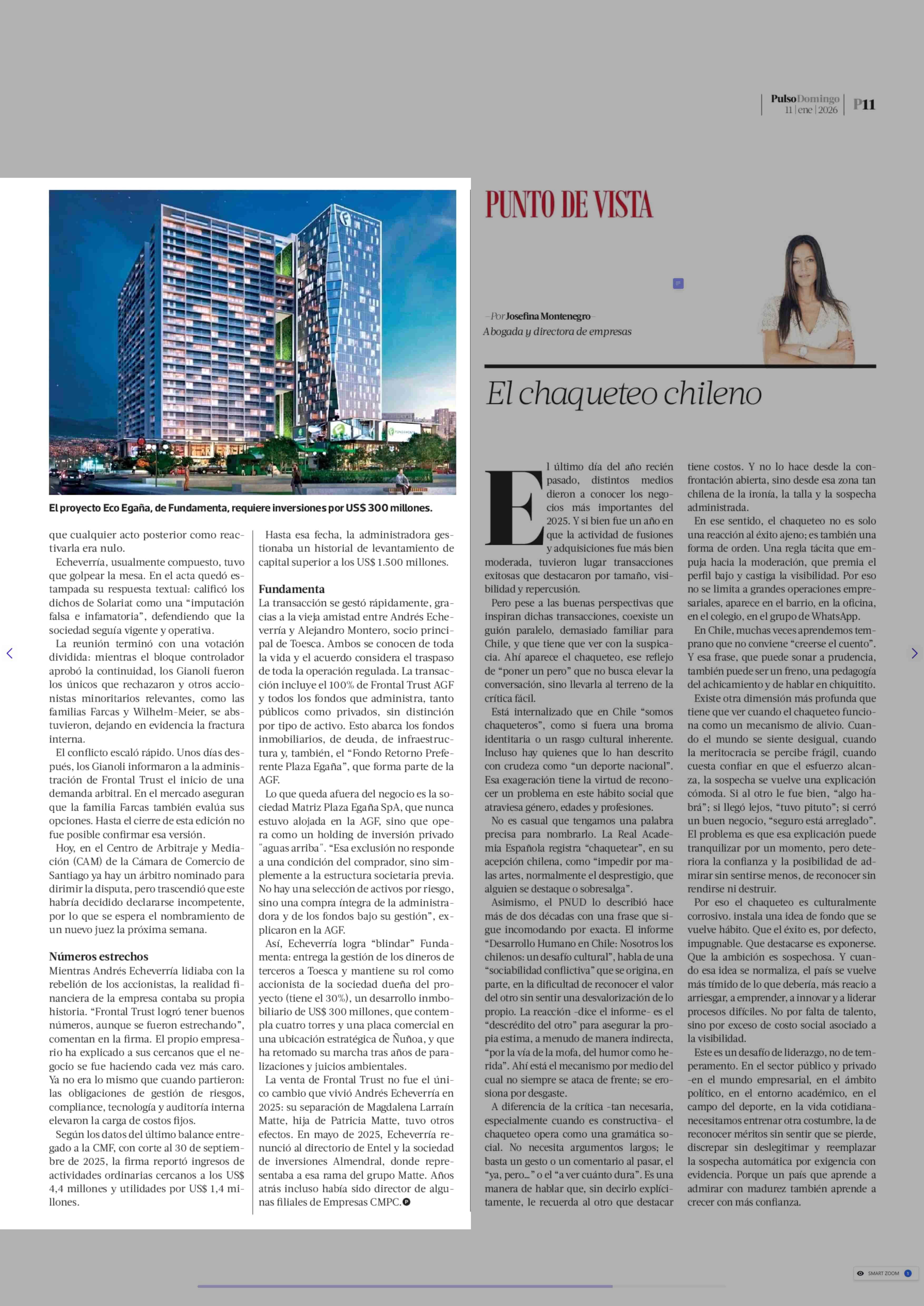 El trueque de Andrés Echeverría: dejar la gestión de fondos para blindar Fundamenta 11-01-2026 La Tercera |