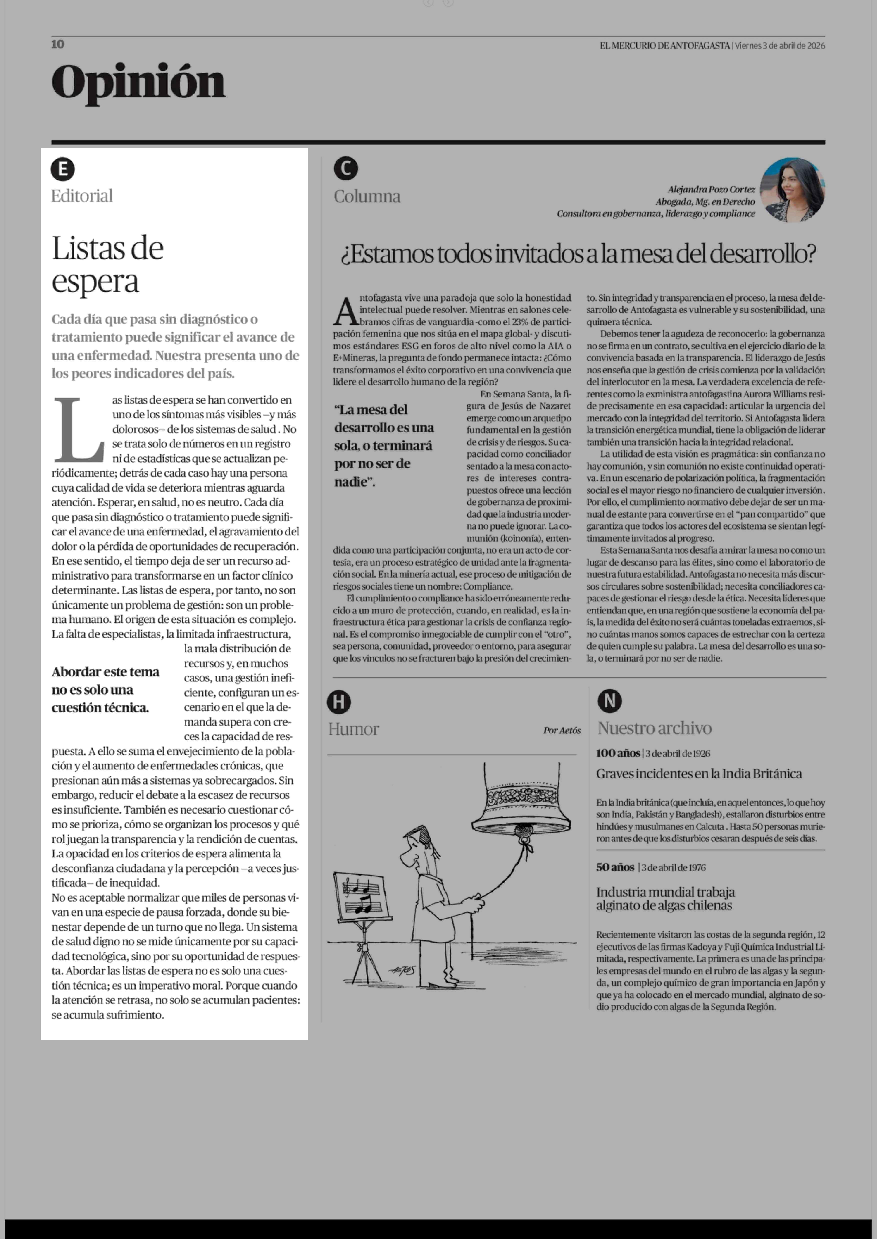 Editorial: Listas de espera 03-04-2026 El Mercurio de Antofagasta |