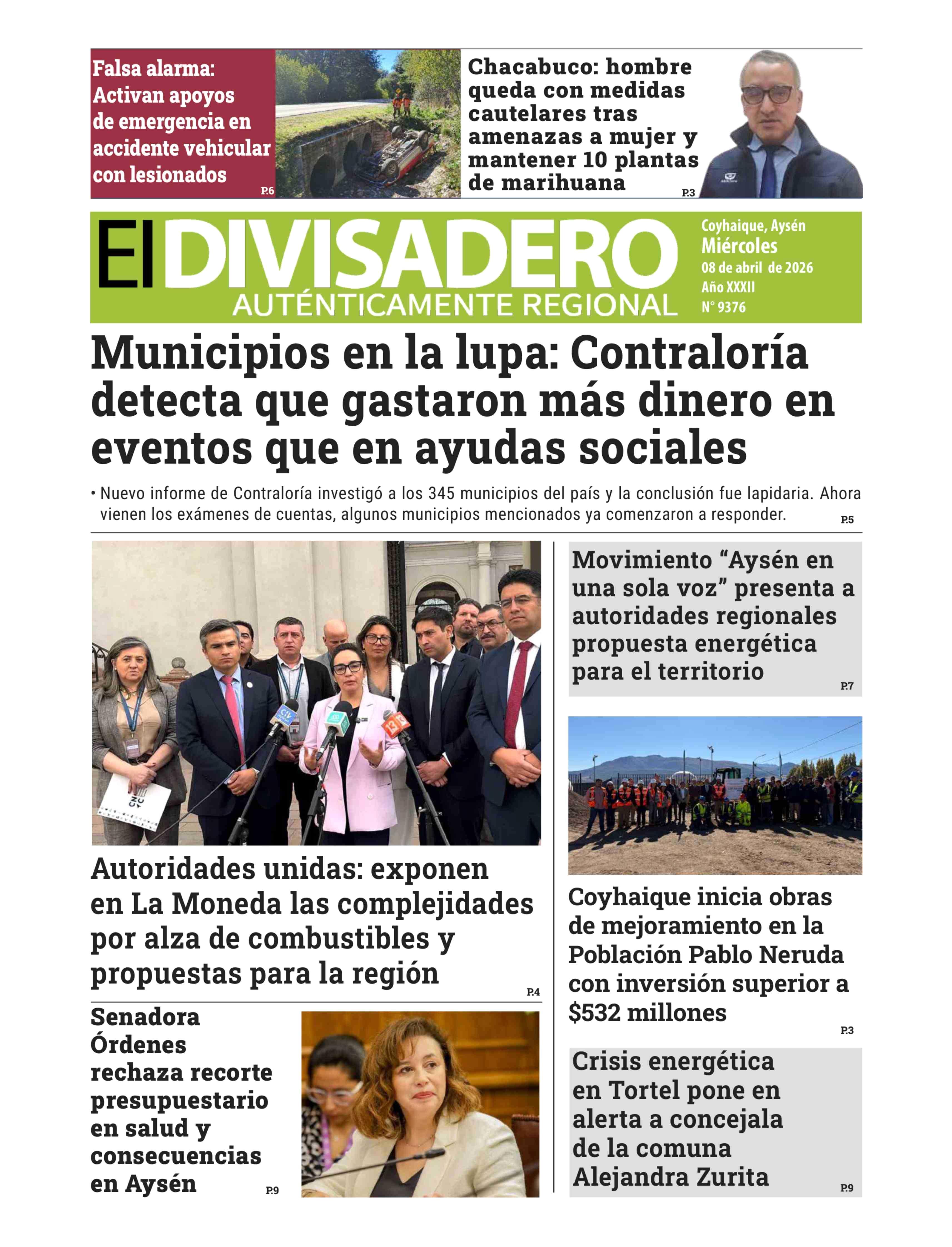 Fecha: 08-04-2026 Sector: Portada Región: Región Aysén del General Carlos Ibáñez del Campo