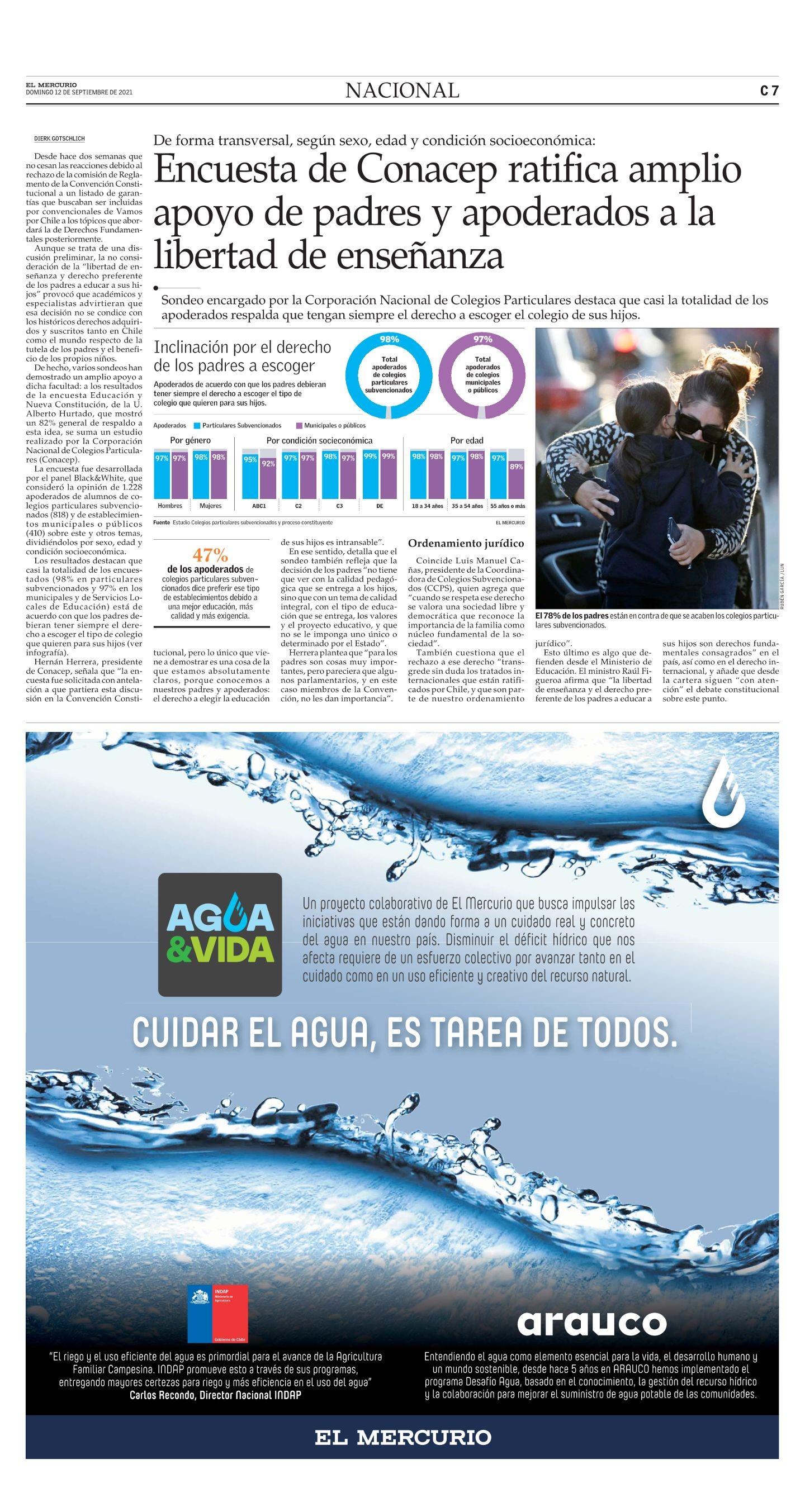 Encuesta de Conacep ratifica amplio apoyo de padres y apoderados a la libertad de enseñanza 12-09-2021 El Mercurio |