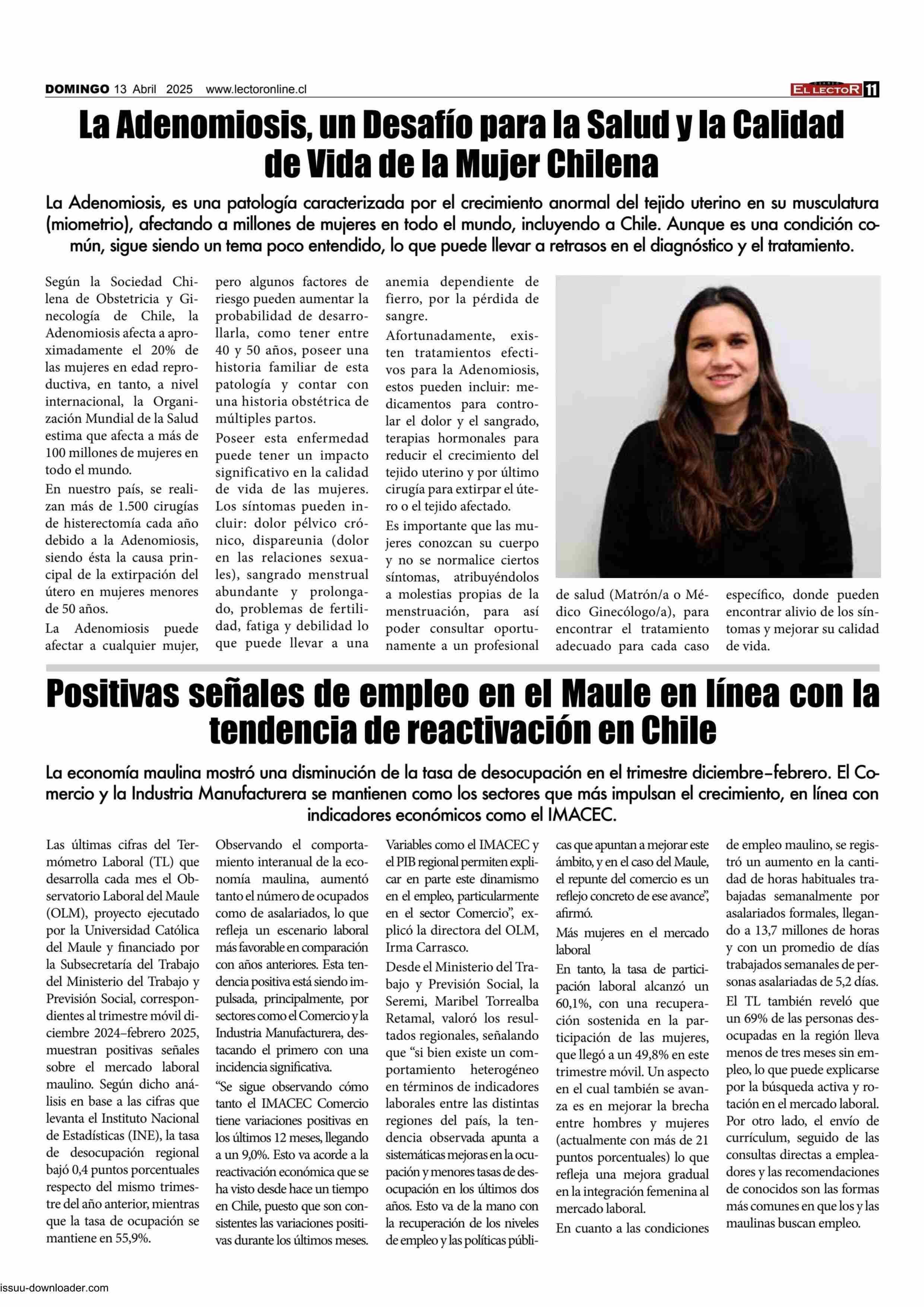 La Adenomiosis, un Desafío para la Salud y la Calidad de Vida de la Mujer Chilena 13-04-2025 El Lector |