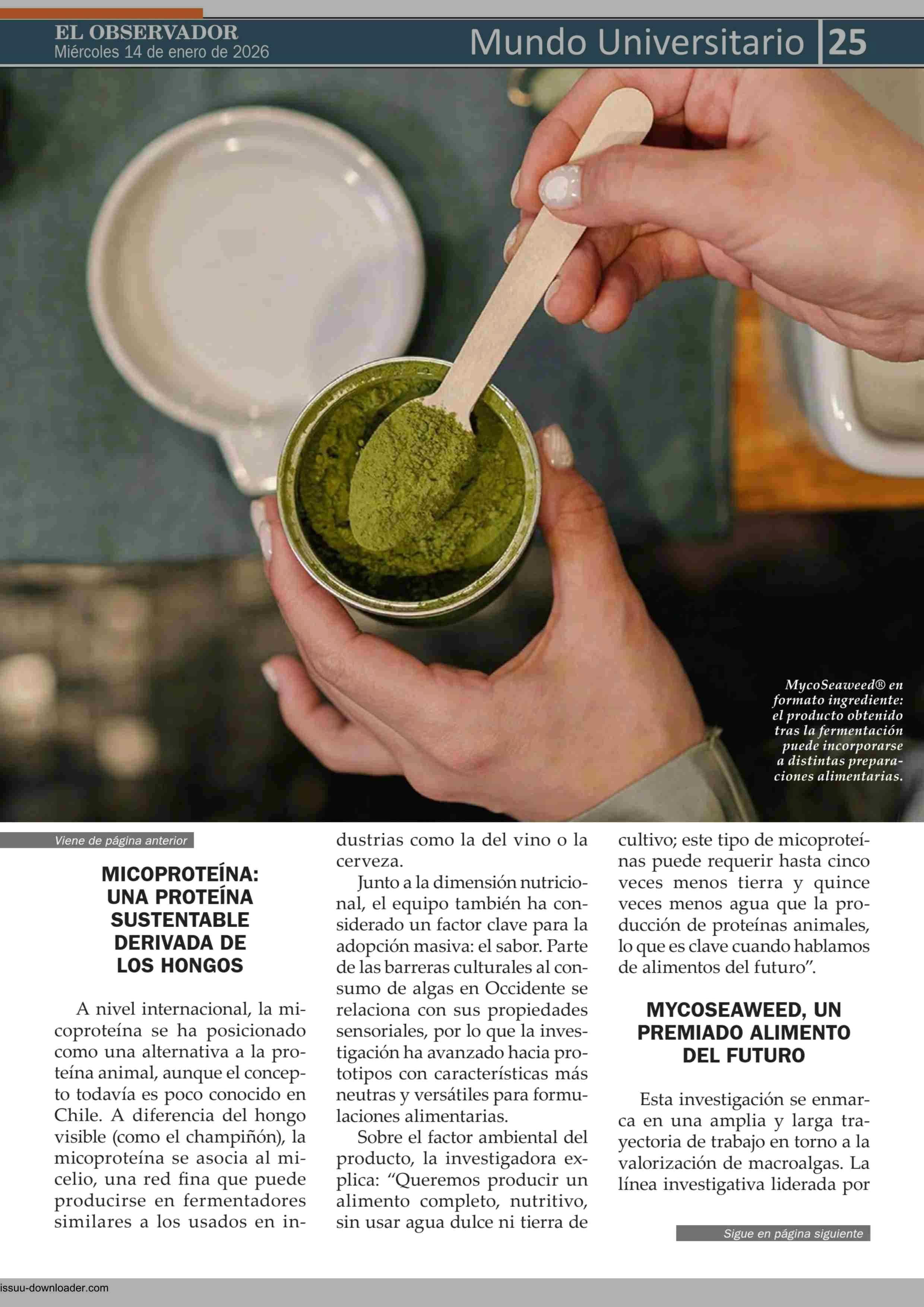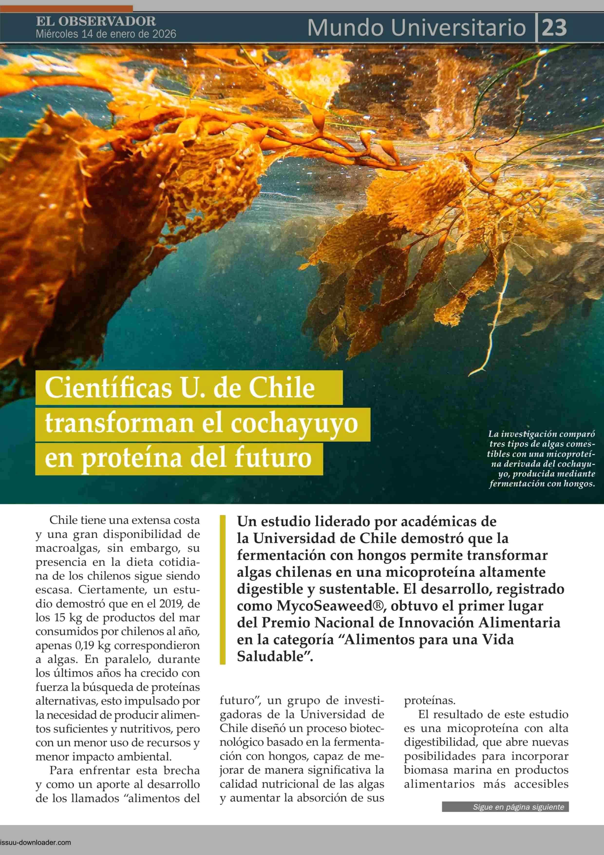Título: Científicas U. de Chile transforman el cochayuyo en proteína del futuro