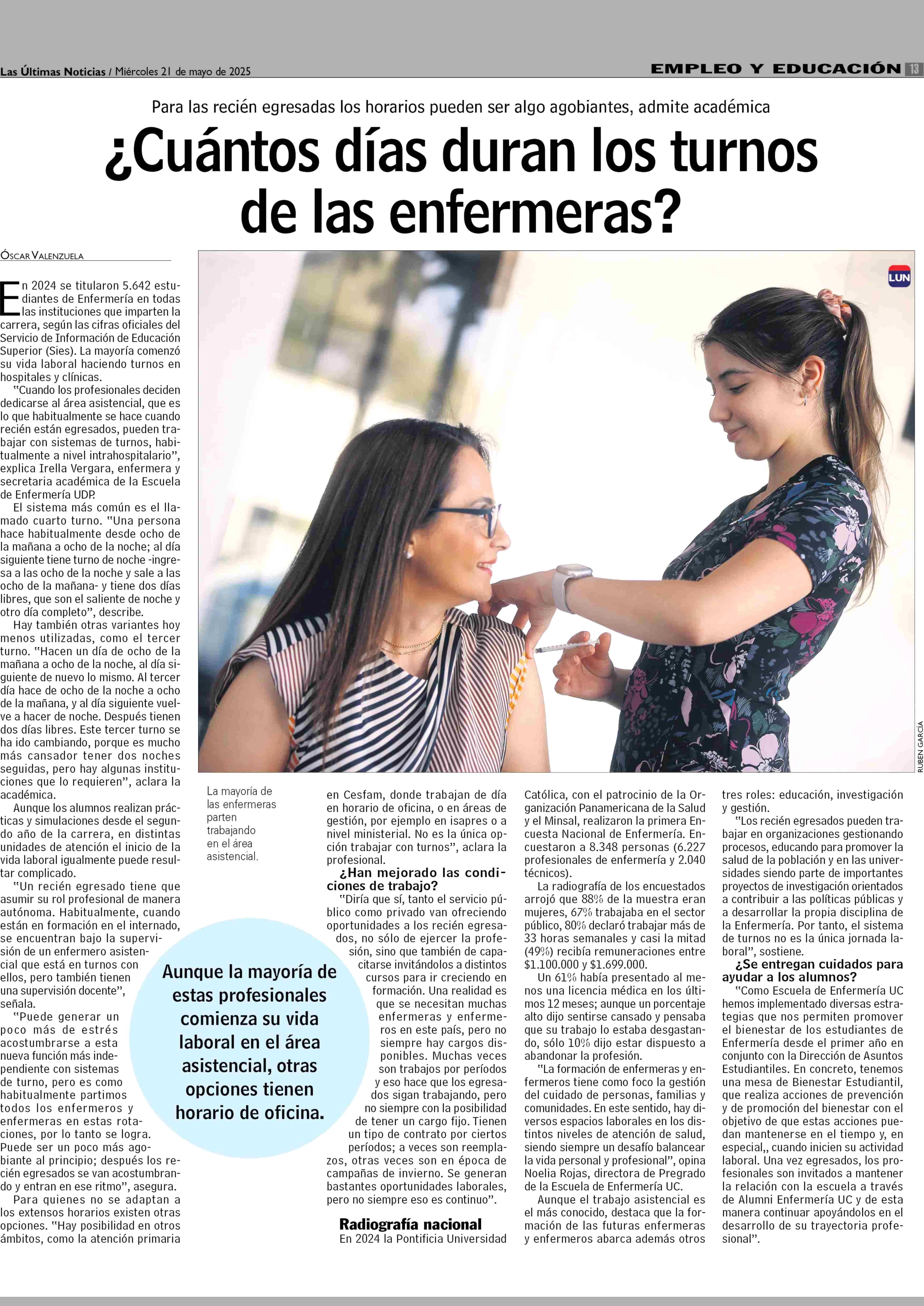 ¿Cuántos días duran los turnos de las enfermeras? 21-05-2025 Las Últimas Noticias |