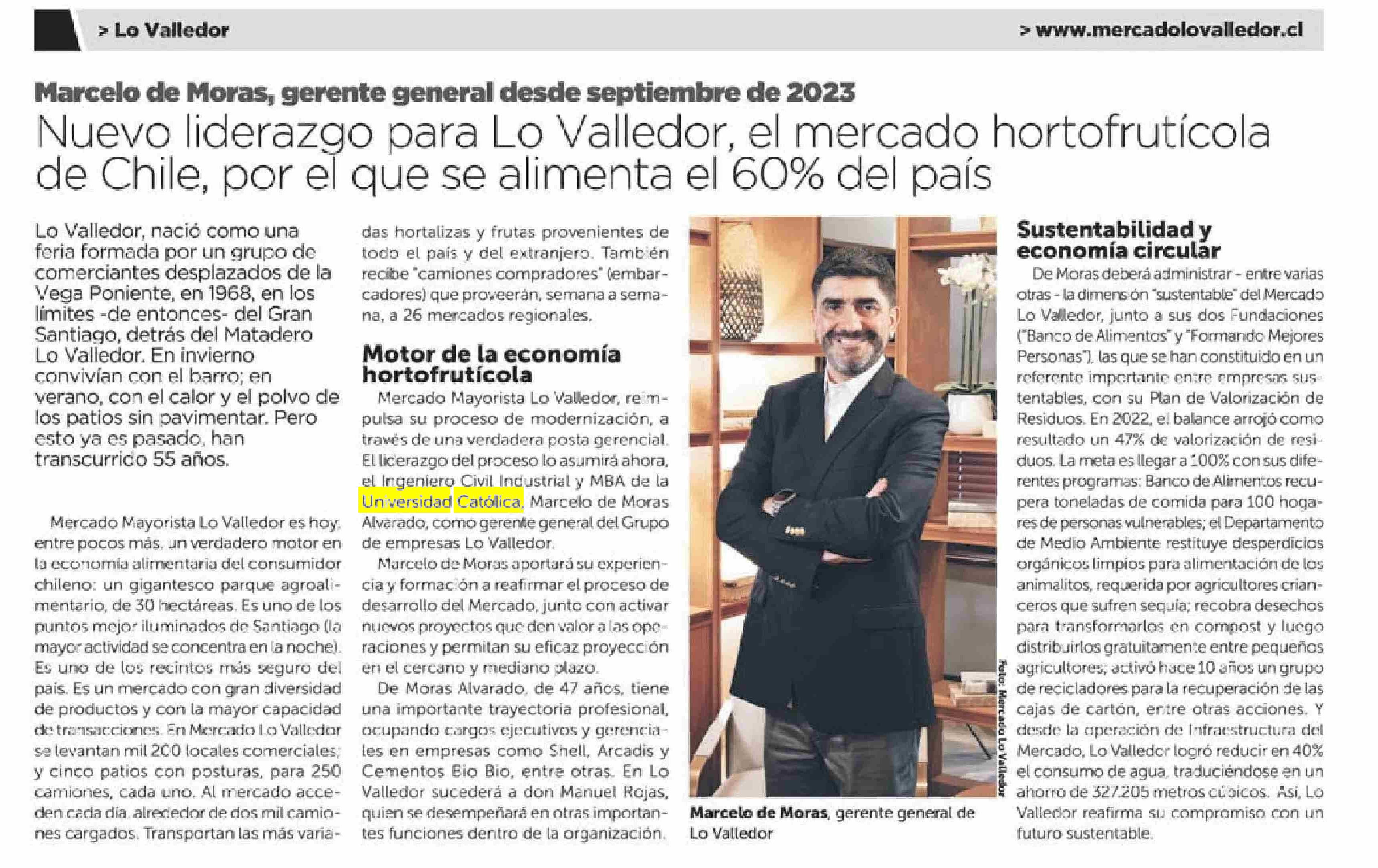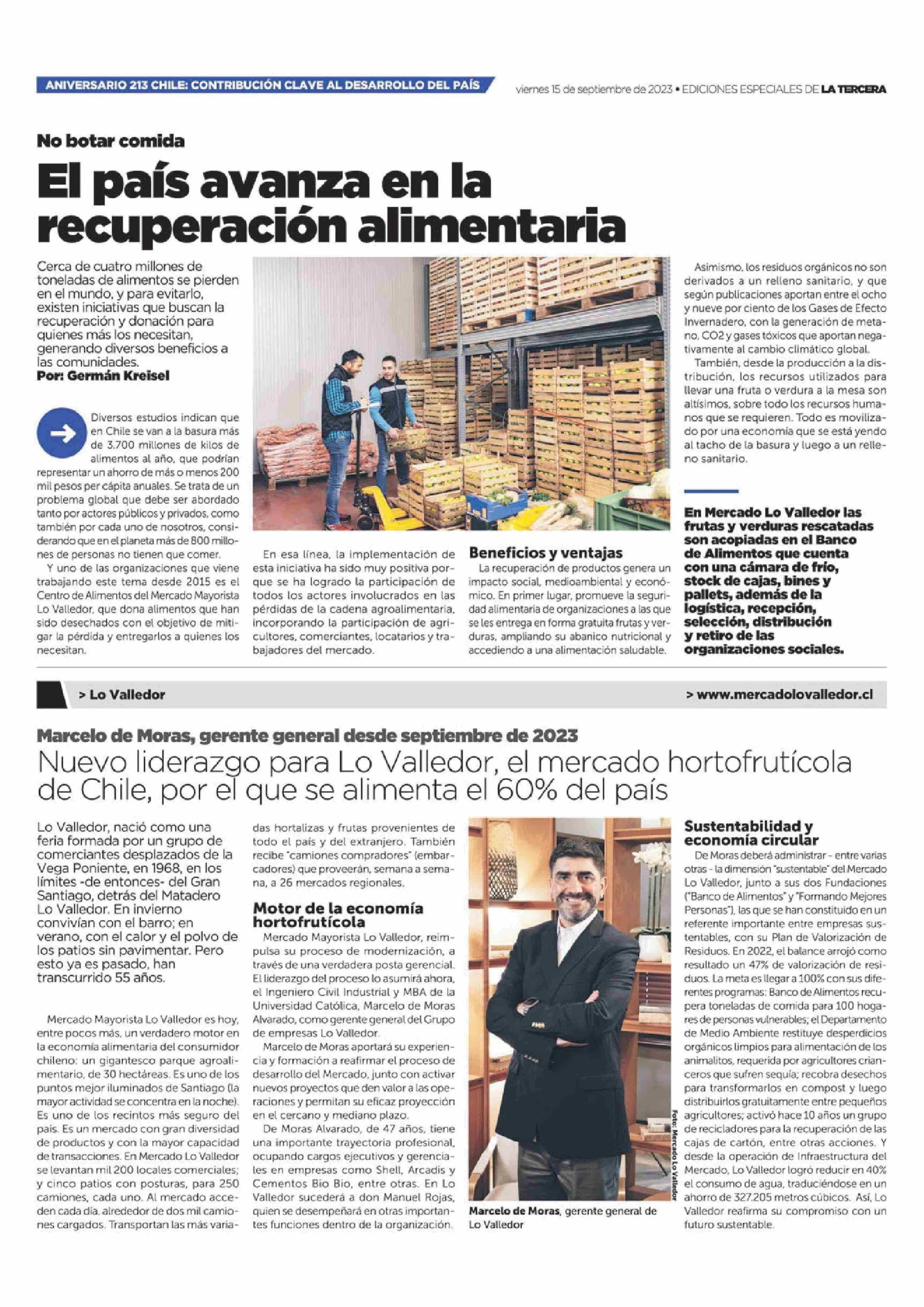 Nuevo liderazgo para Lo Valledor, el mercado hortofrutícola de Chile, por el que se alimenta el 60% del país 15-09-2023 La Tercera |