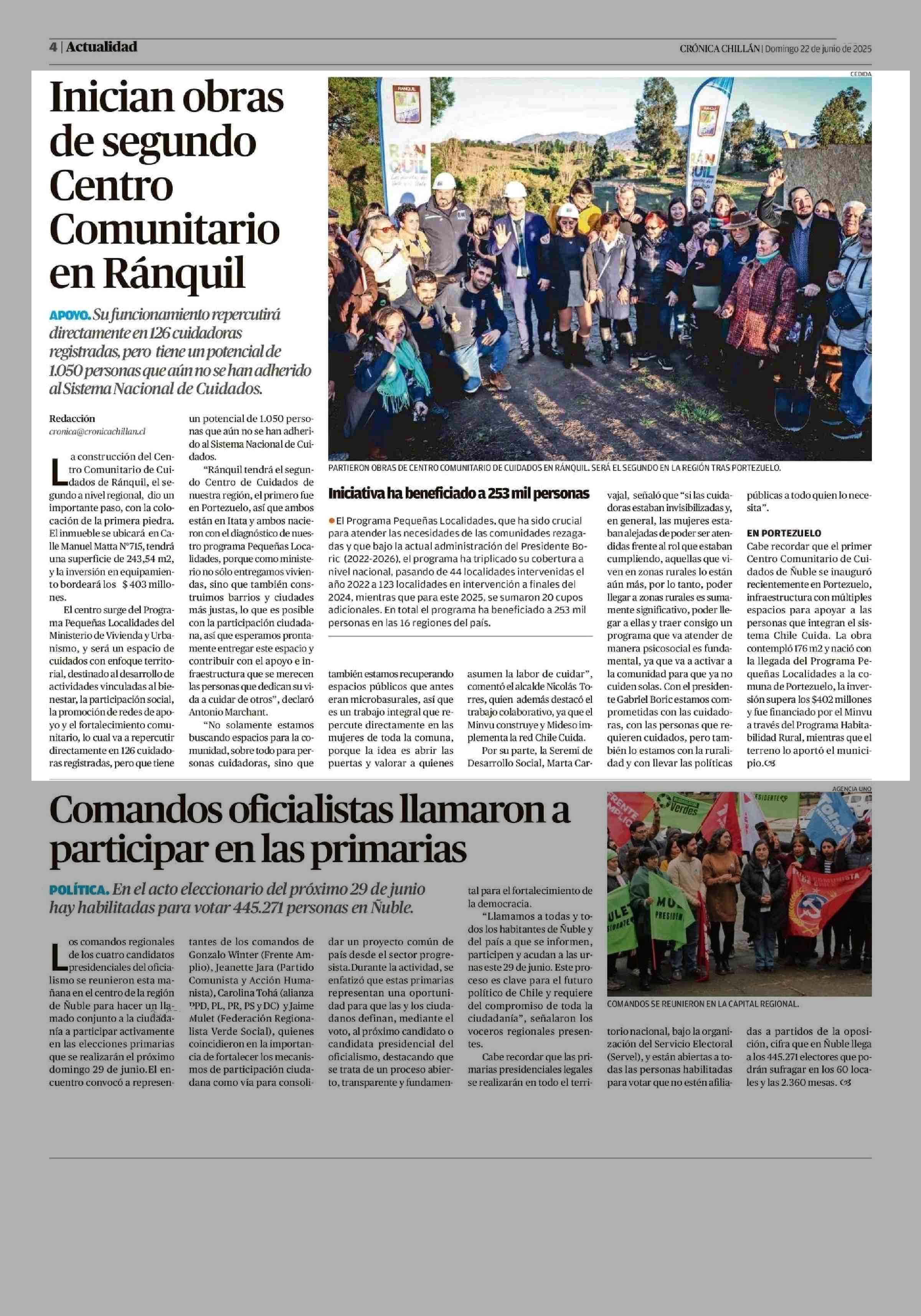 | Fecha: | 22-06-2025 | Sector: | Noticia general | Región: | Región del Ñuble |
