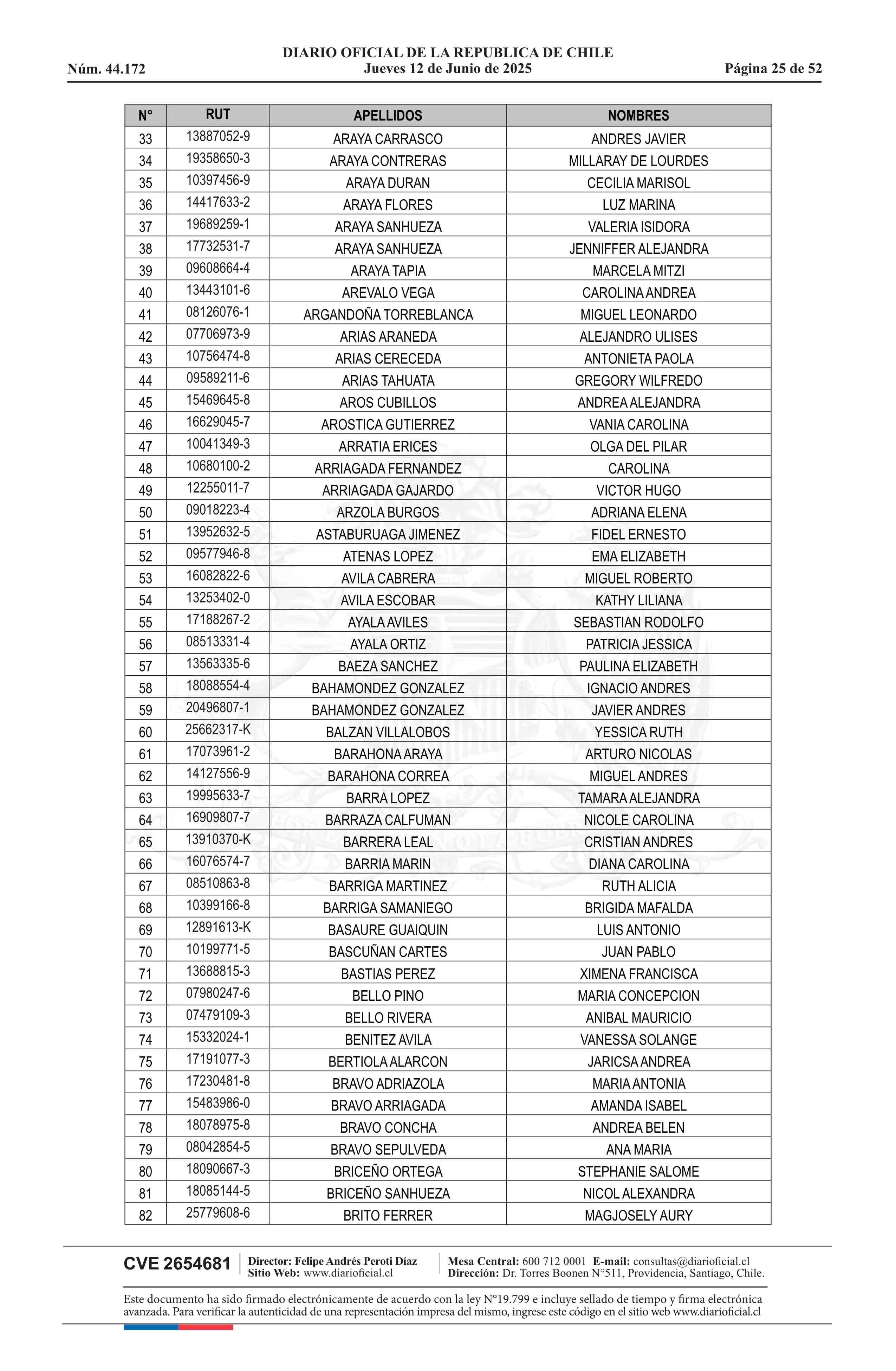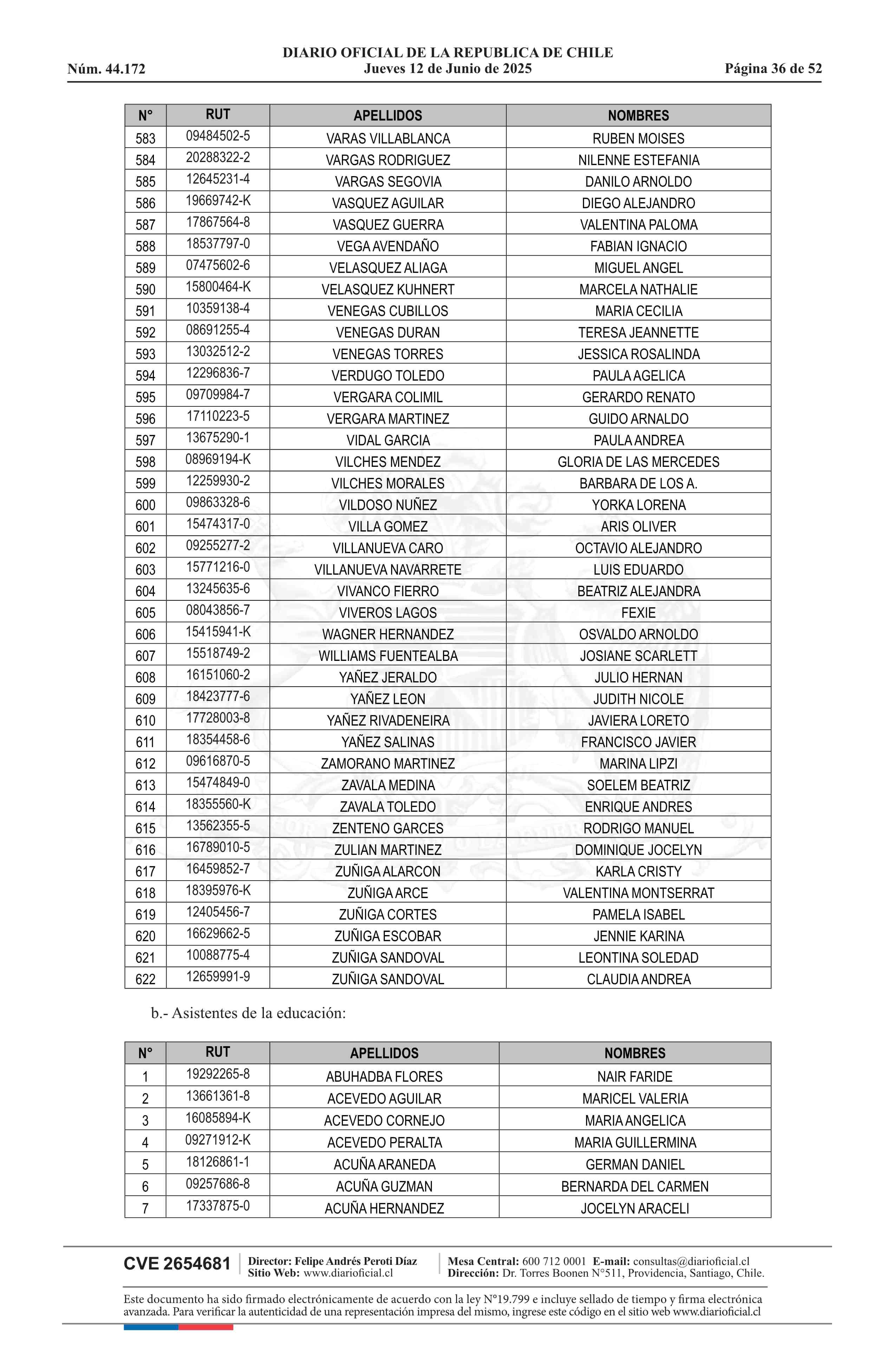 | Título: | Decreto exento número 381, de 2025.- Individualiza a profesionales de la educación y asistentes de la educación que se desempeñan en los establecimientos educacionales de dependencia de las municipalidades de Conchalí y Quilicura, traspasados al Servicio Local de Educación Pública Los Libertadores, |