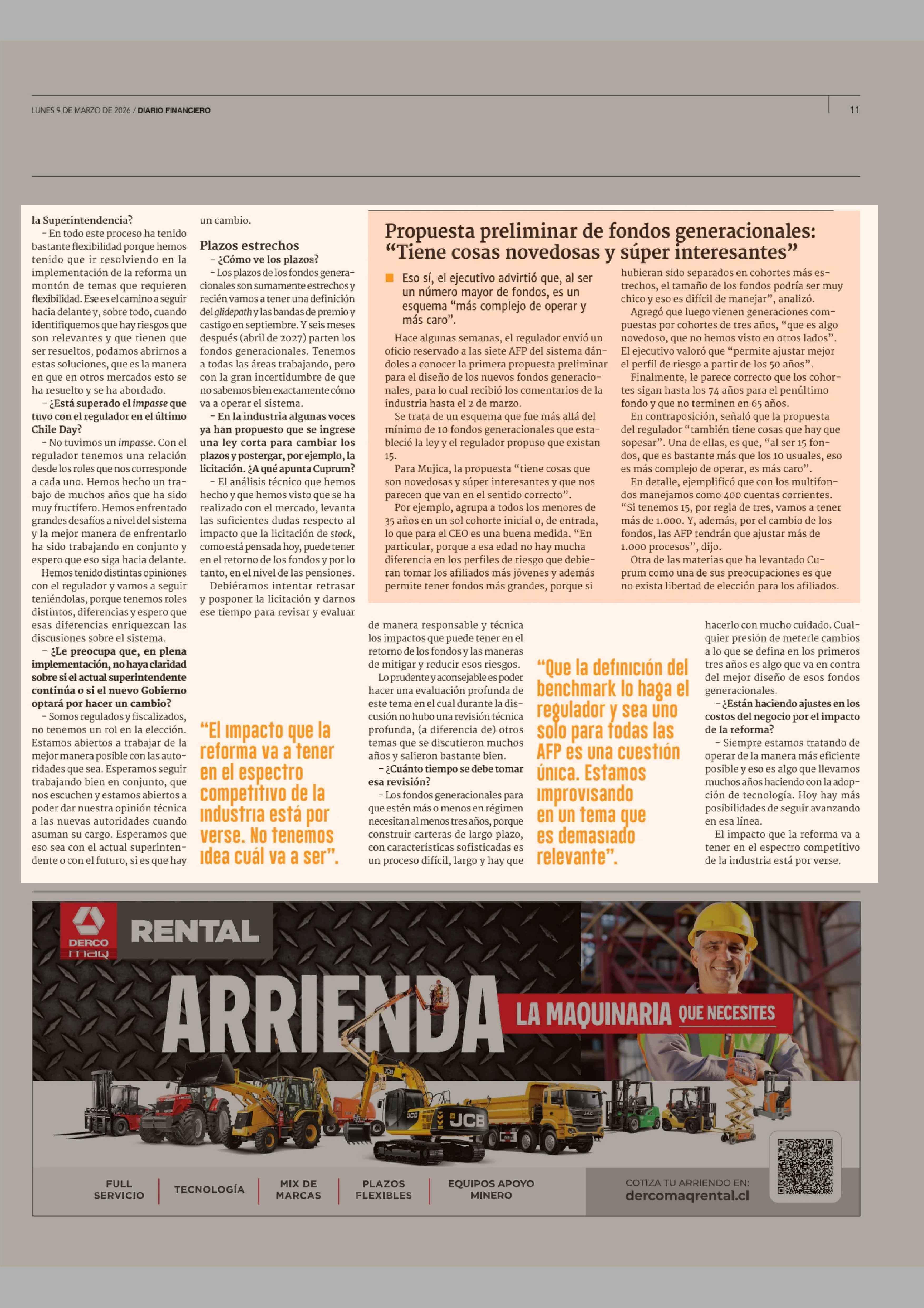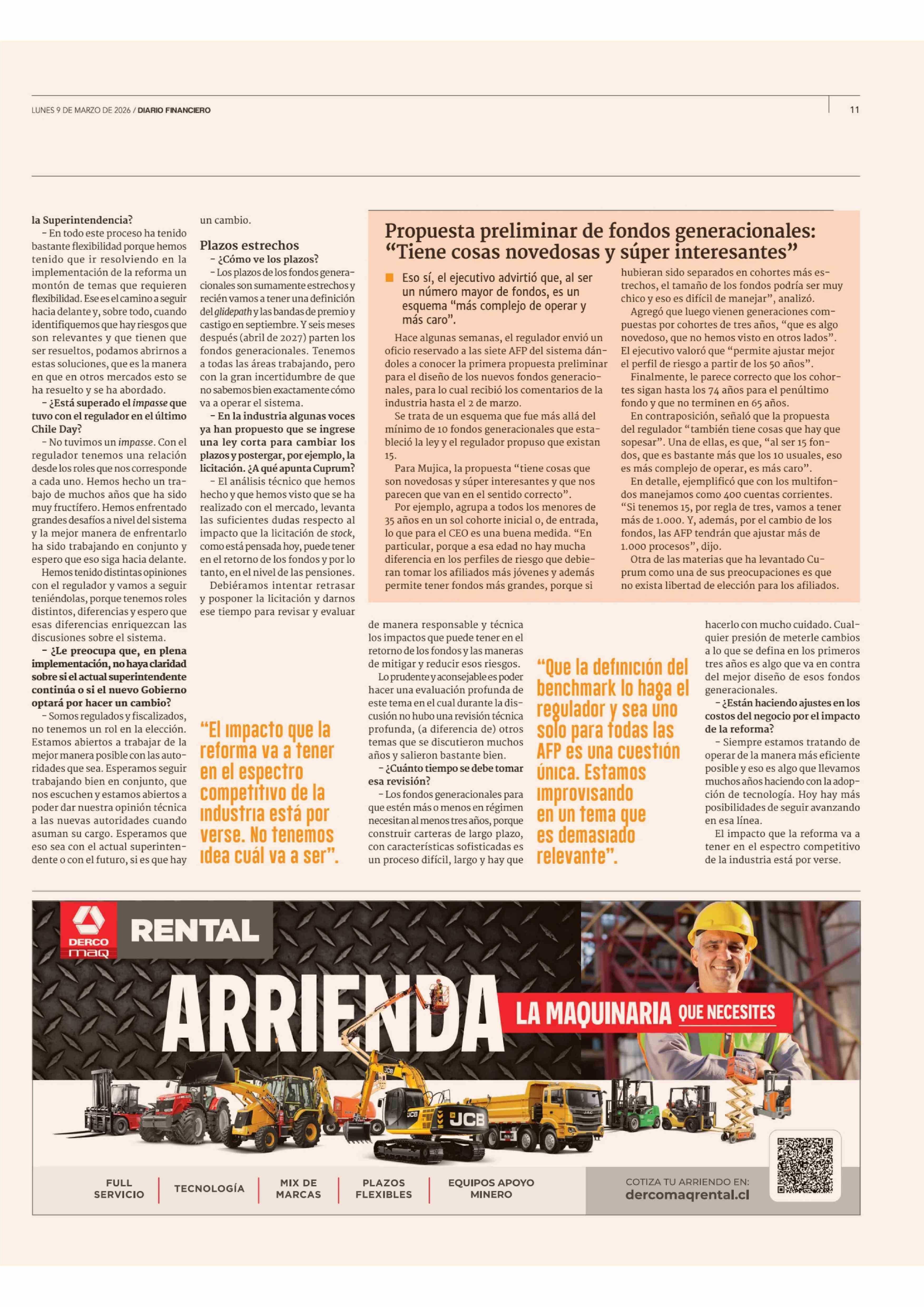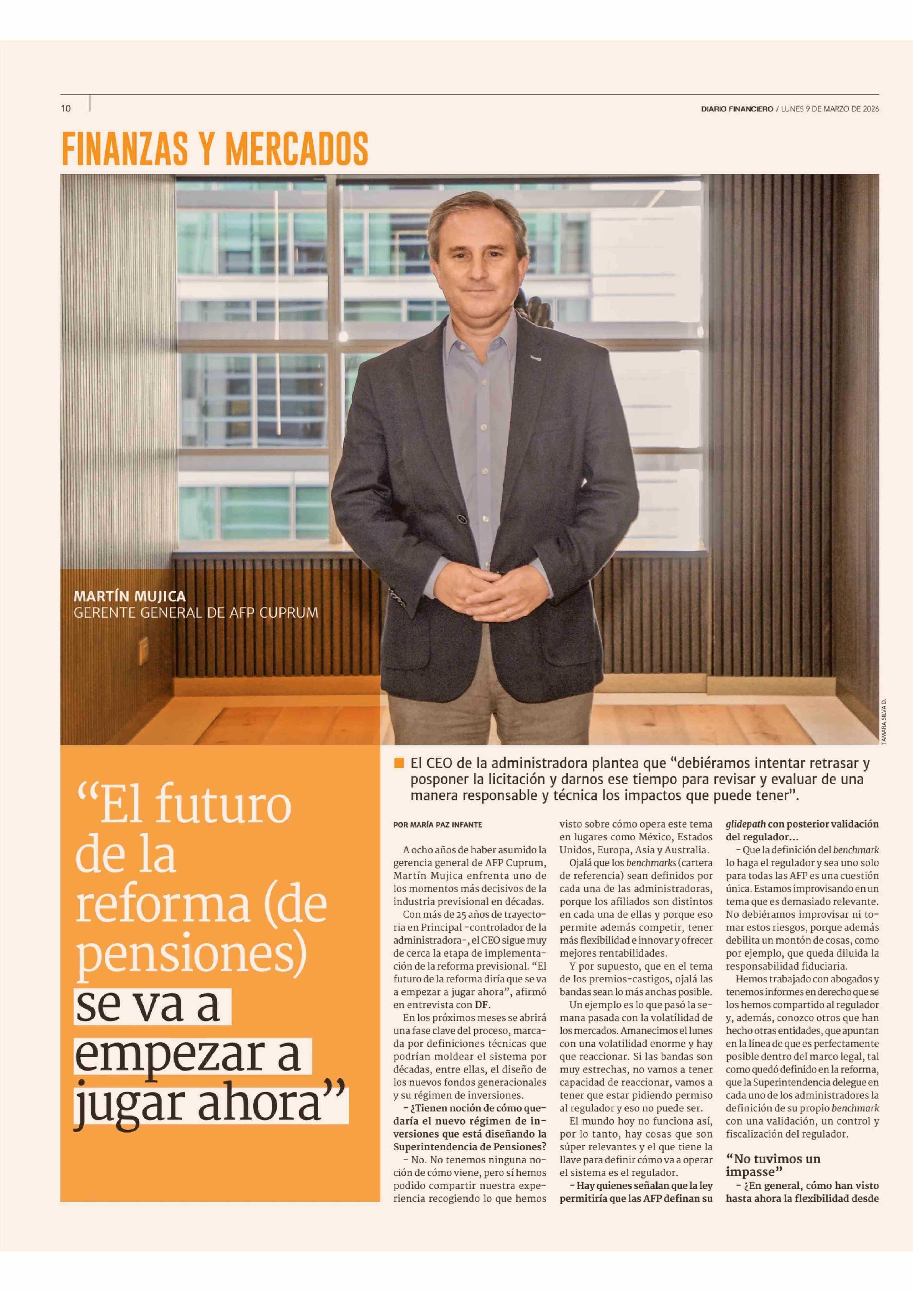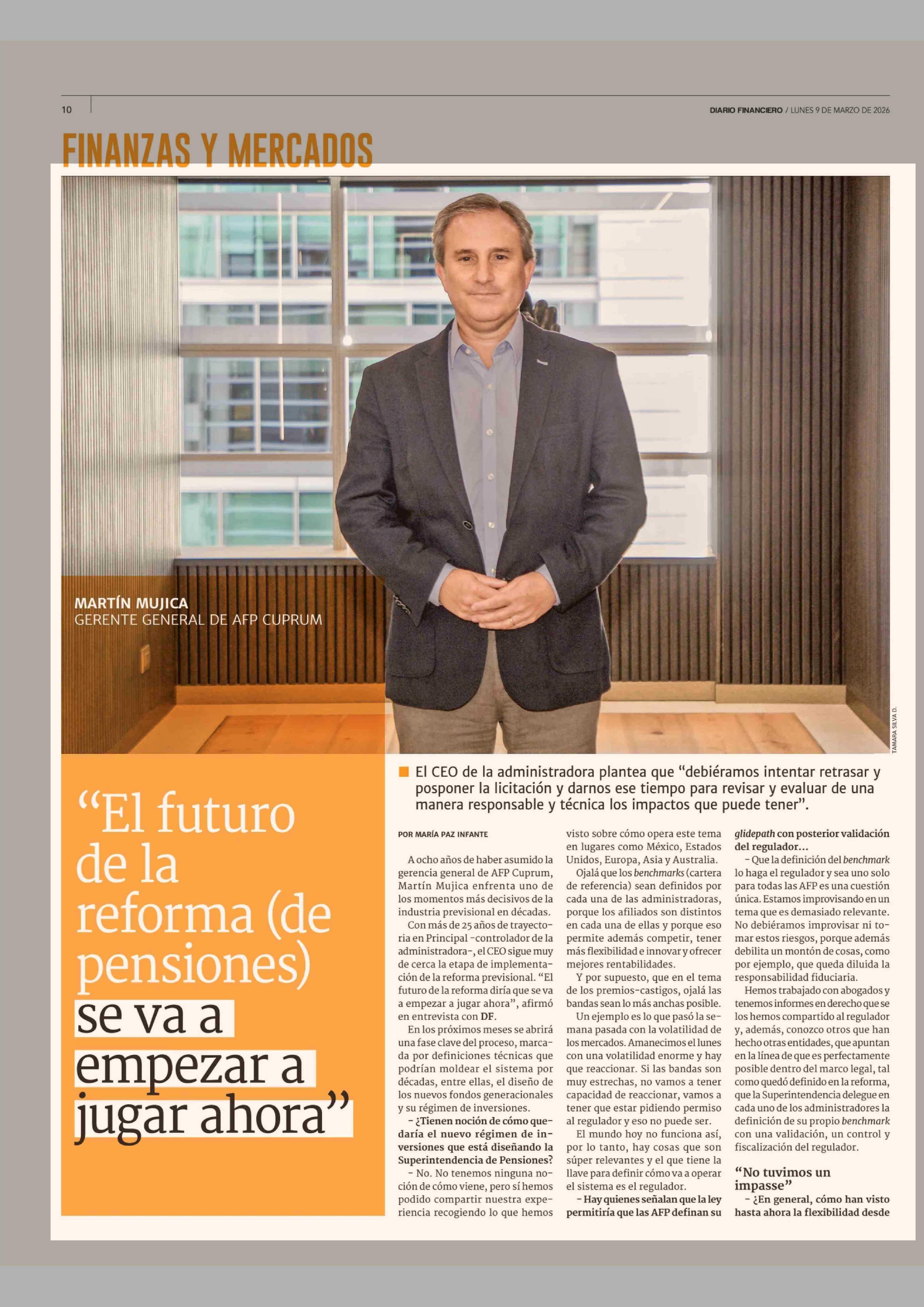"El futuro de la reforma (de pensiones) se va a empezar a jugar ahora' 09-03-2026 Diario Financiero |