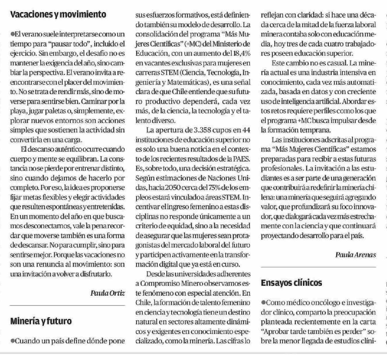 Cartas: Minería y futuro 22-01-2026 El Mercurio de Calama |