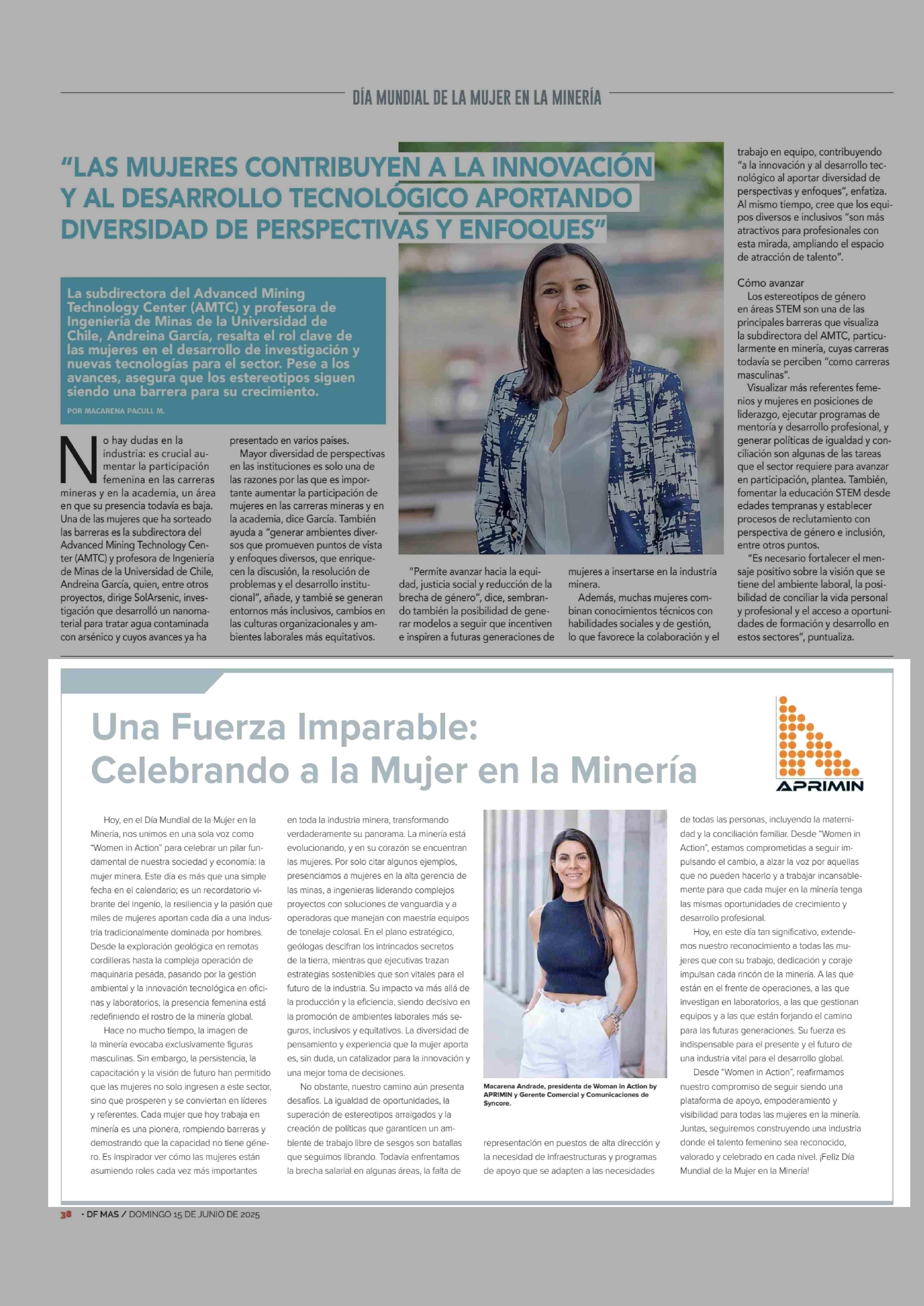 Una Fuerza Imparable: Celebrando a la Mujer en la Minería 15-06-2025 Diario Financiero |