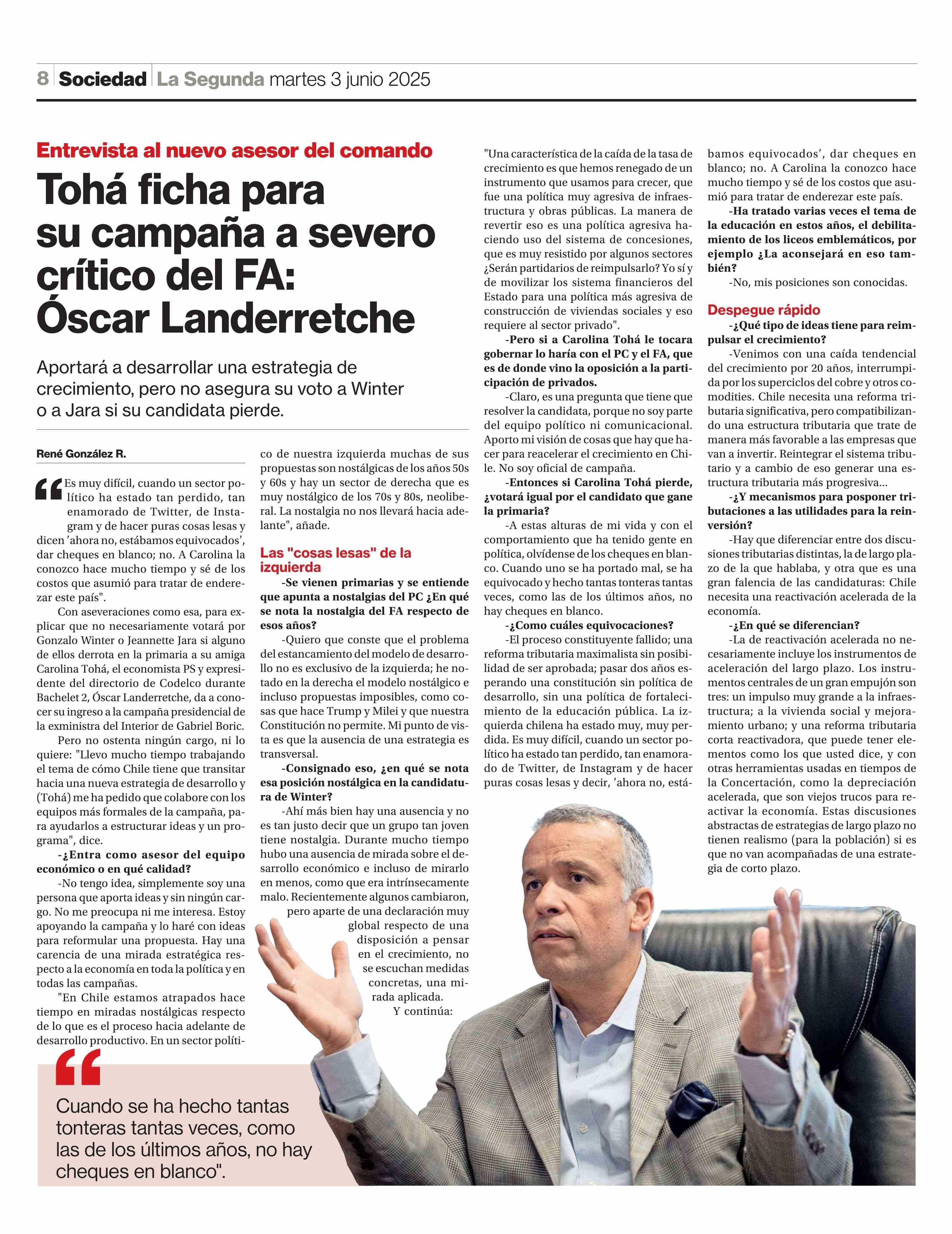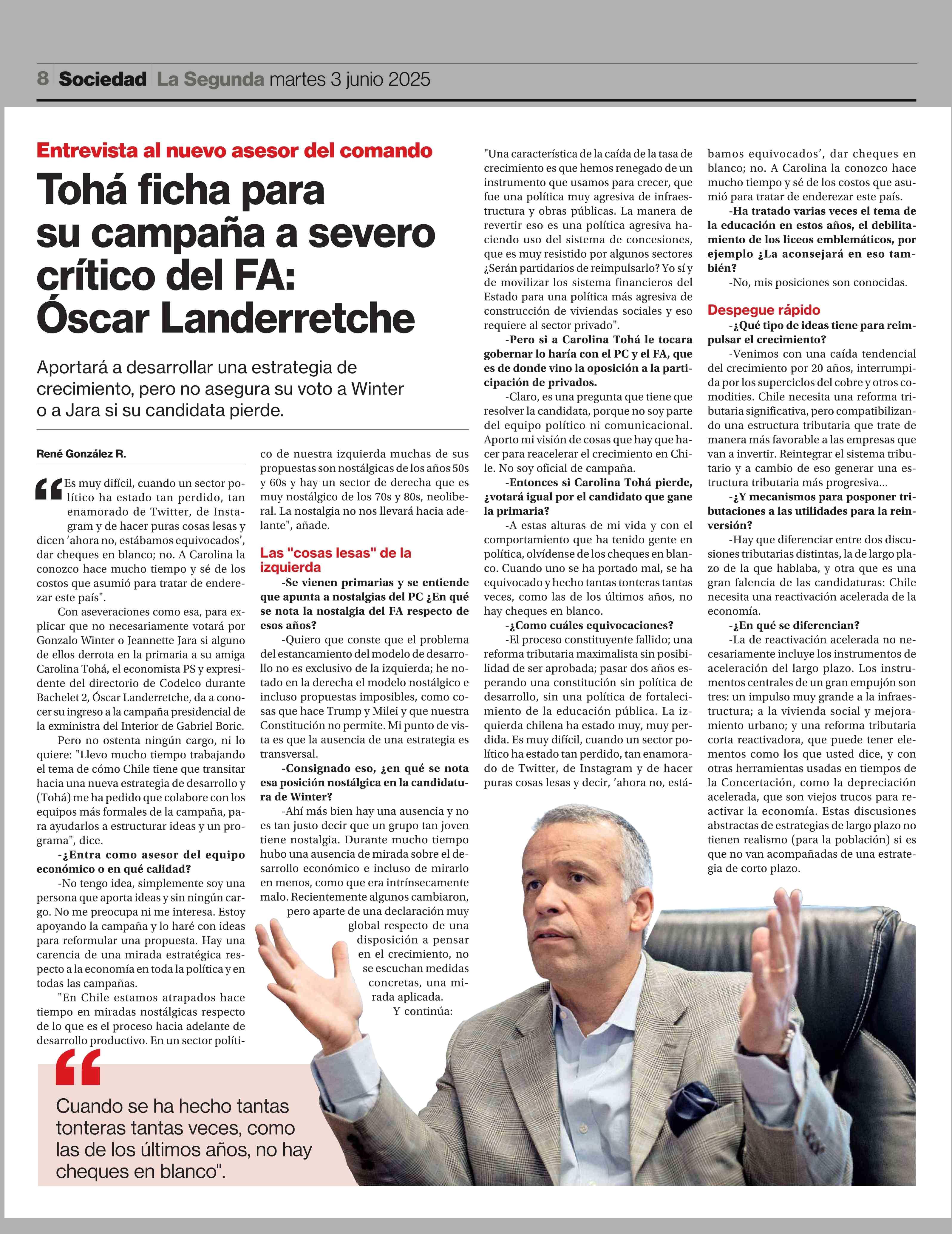 Título: Tohá ficha para su campaña a severo crítico del FA: Oscar Landerretche