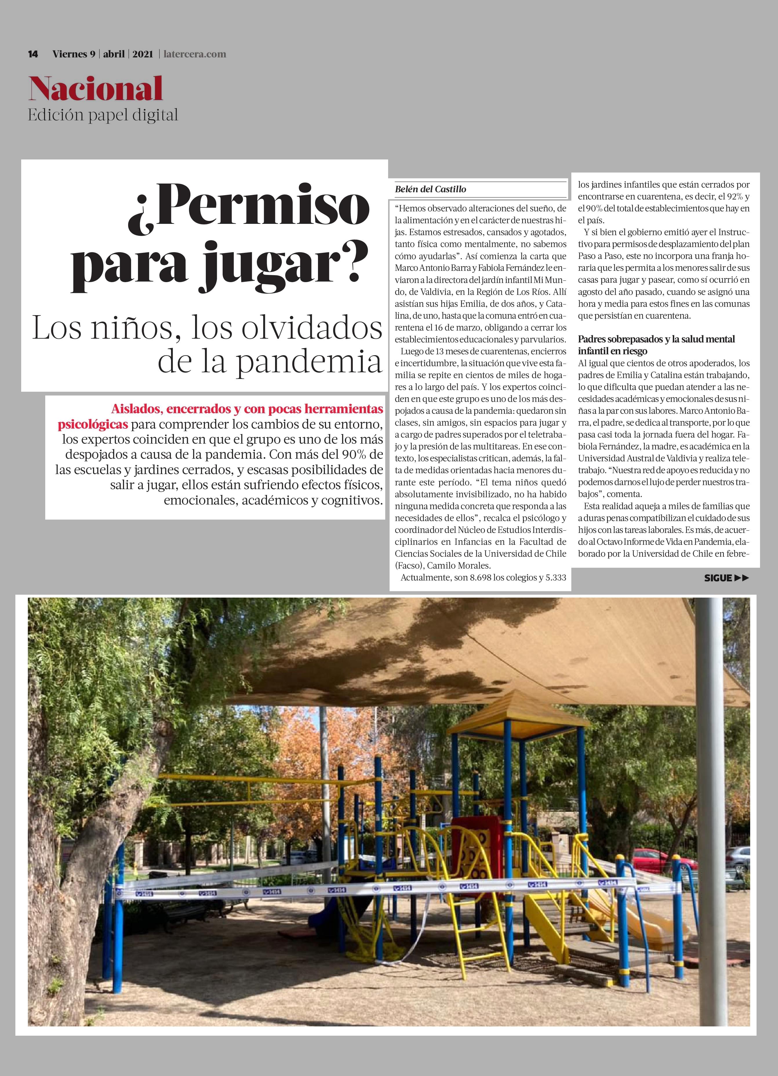 ¿Permiso para jugar? Los niños, los olvidados de la pandemia 09-04-2021 La Tercera |