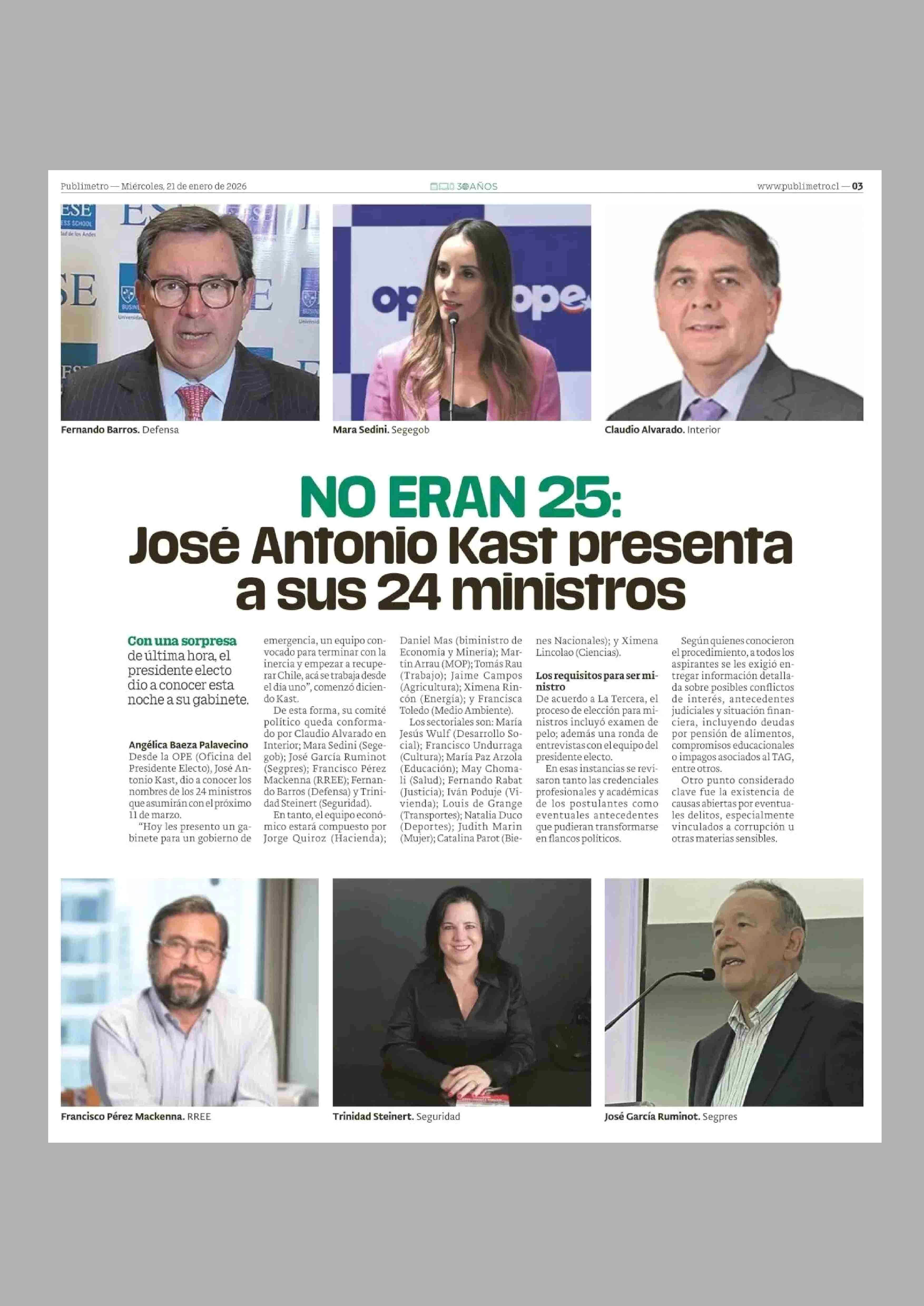 NO ERAN 25: Jose Antonio Kast presenta a sus 24 ministros 21-01-2026 Publimetro |