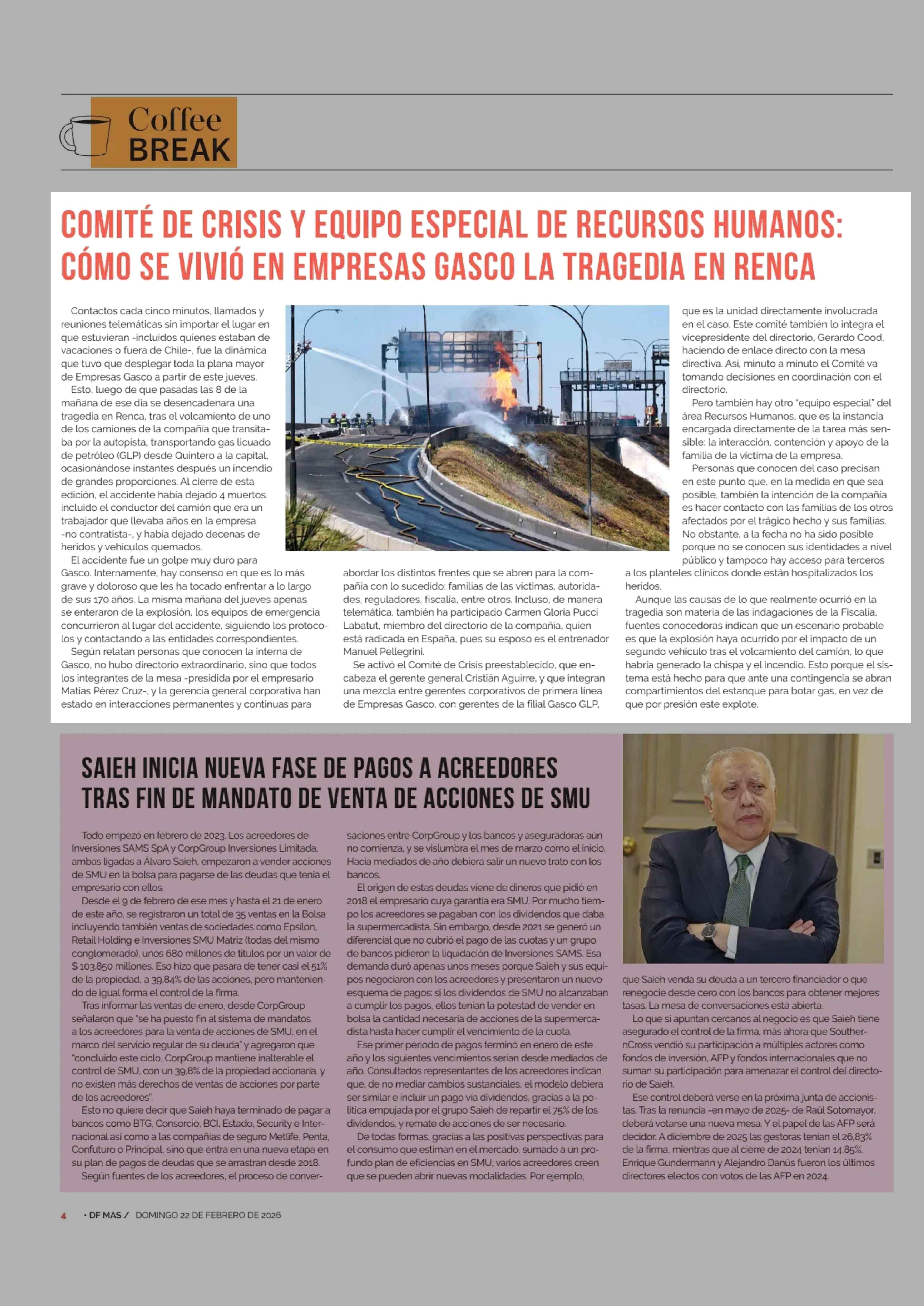 COMITÉ DE CRISIS Y EQUIPO ESPECIAL DE RECURSOS HUMANOS: CÓMO SE VIVIÓ EN EMPRESAS GASCO LA TRAGEDIA EN RENCA 22-02-2026 Diario Financiero |