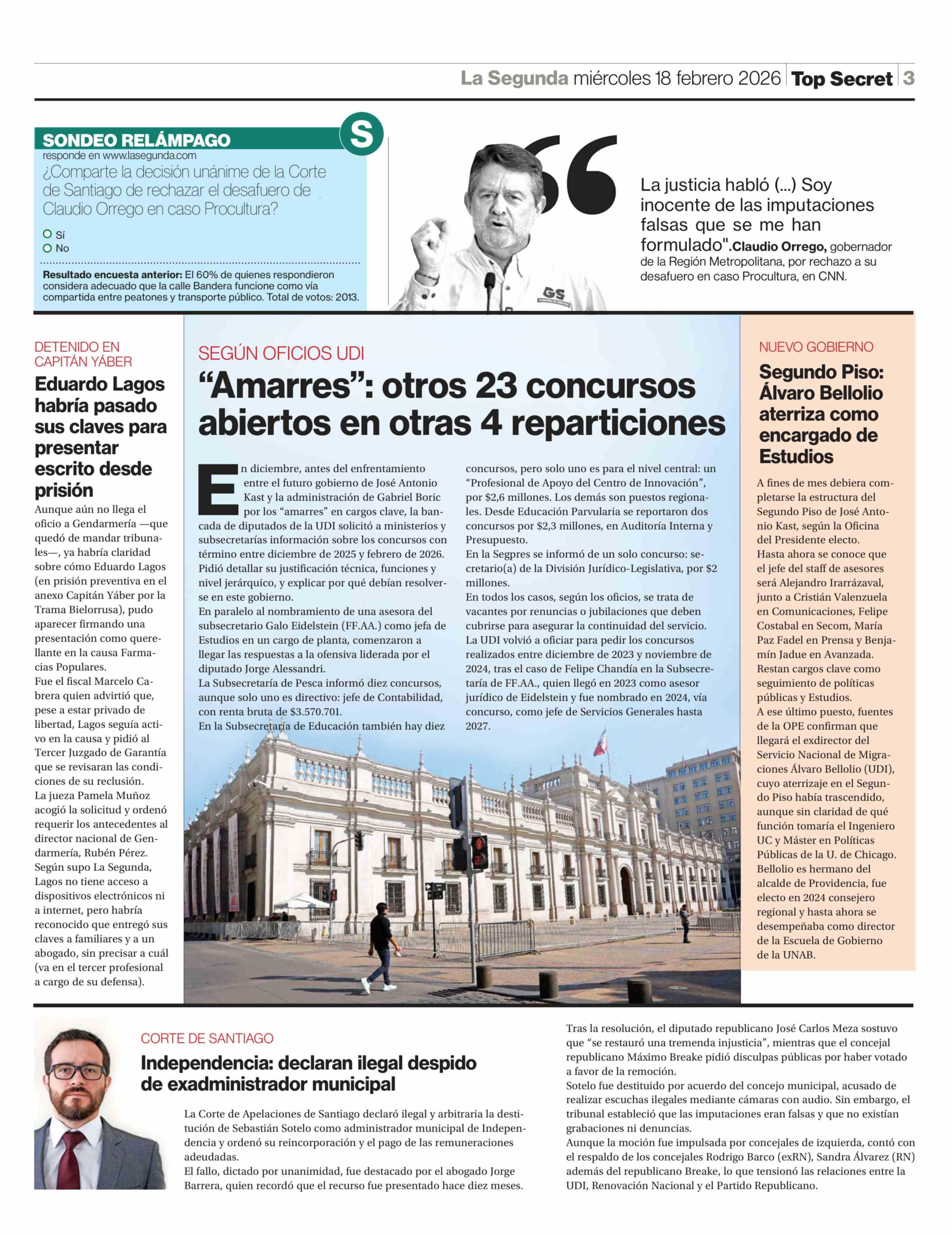 "Amarres": otros 23 concursos abiertos en otras 4 reparticiones 18-02-2026 La Segunda |