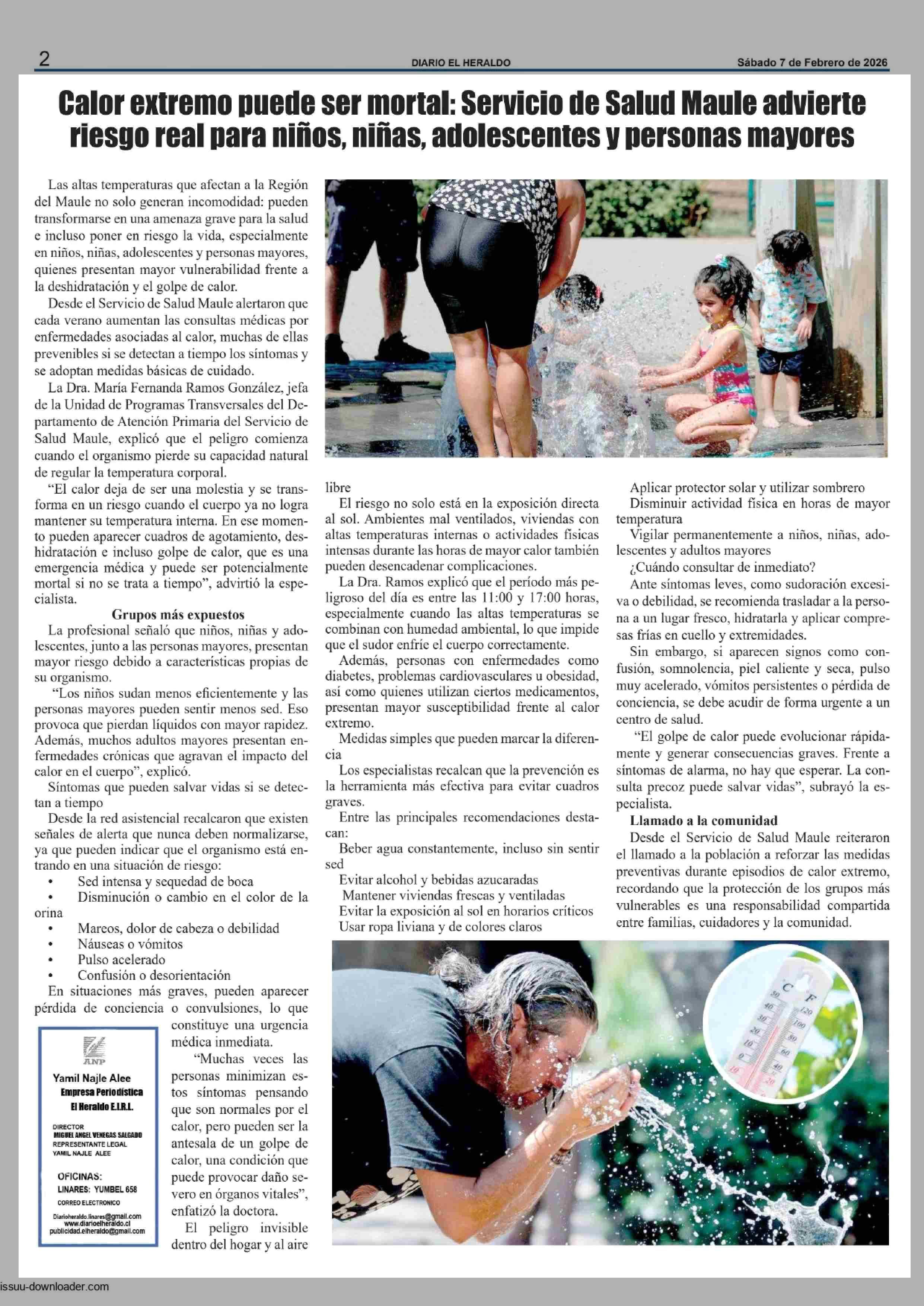 Calor extremo puede ser mortal: Servicio de Salud Maule advierte riesgo real para niños, niñas, adolescentes y personas mayores 07-02-2026 El Heraldo |