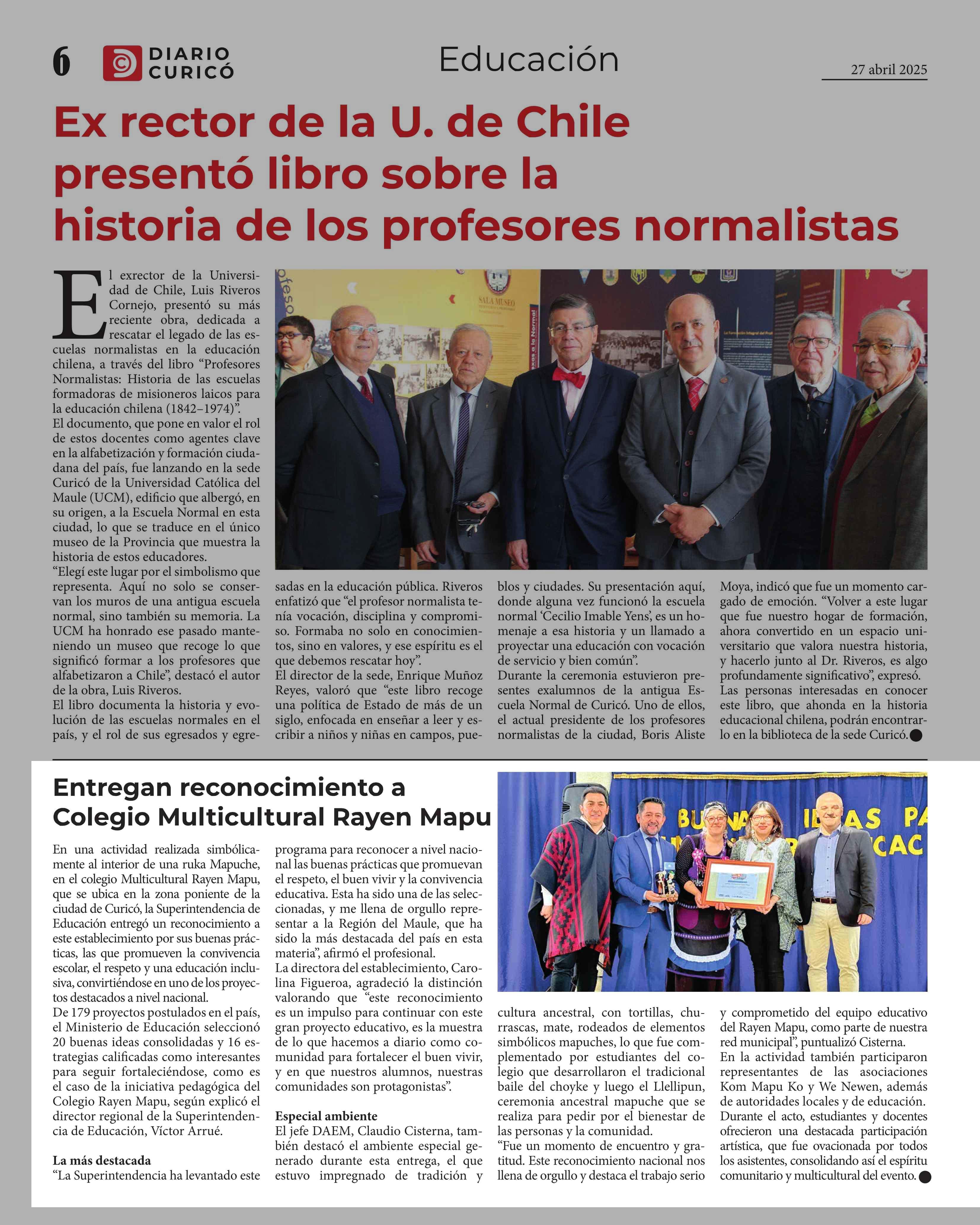 Entregan reconocimiento a Colegio Multicultural Rayen Mapu 04-05-2025 Diario Talca |