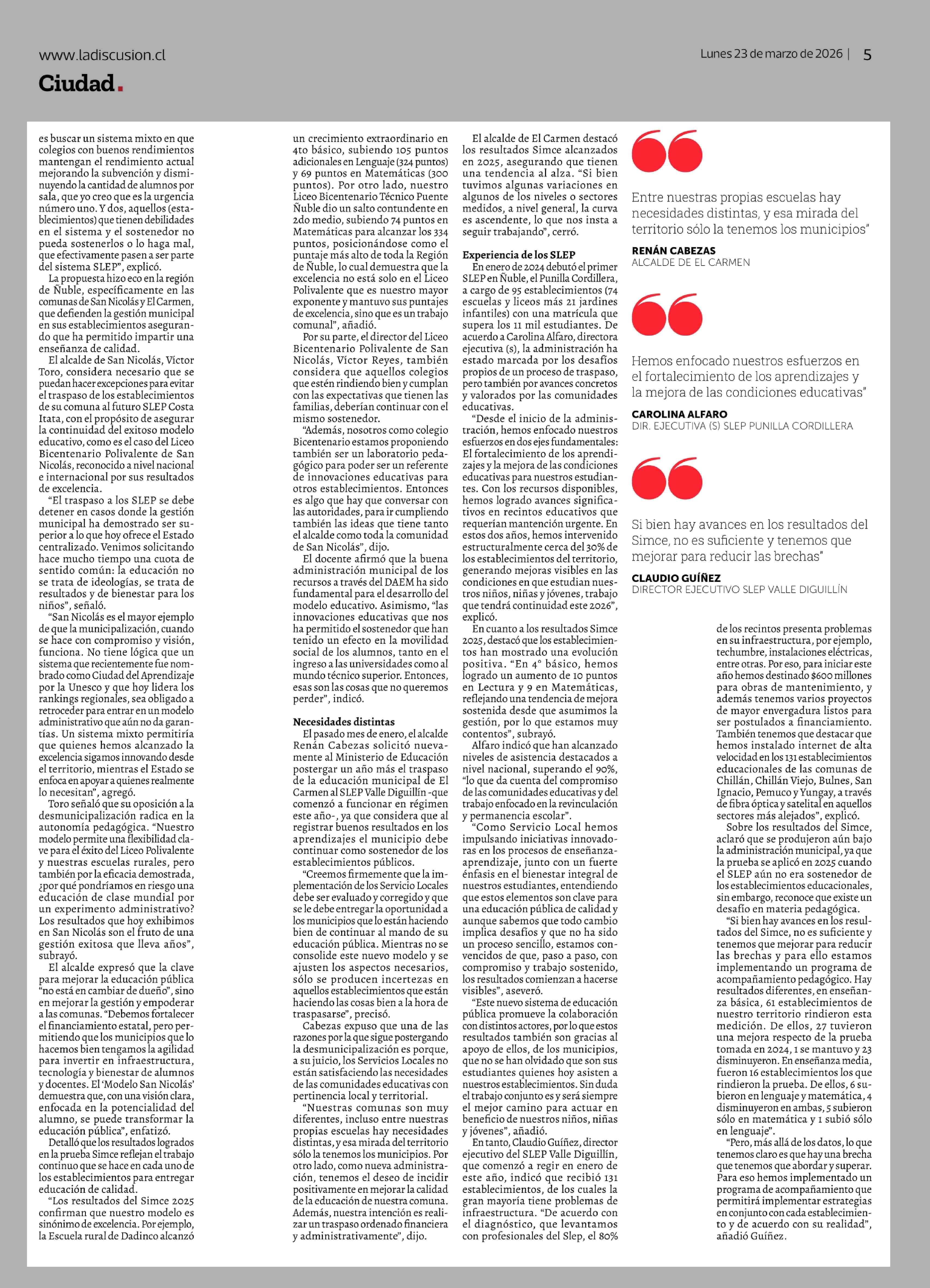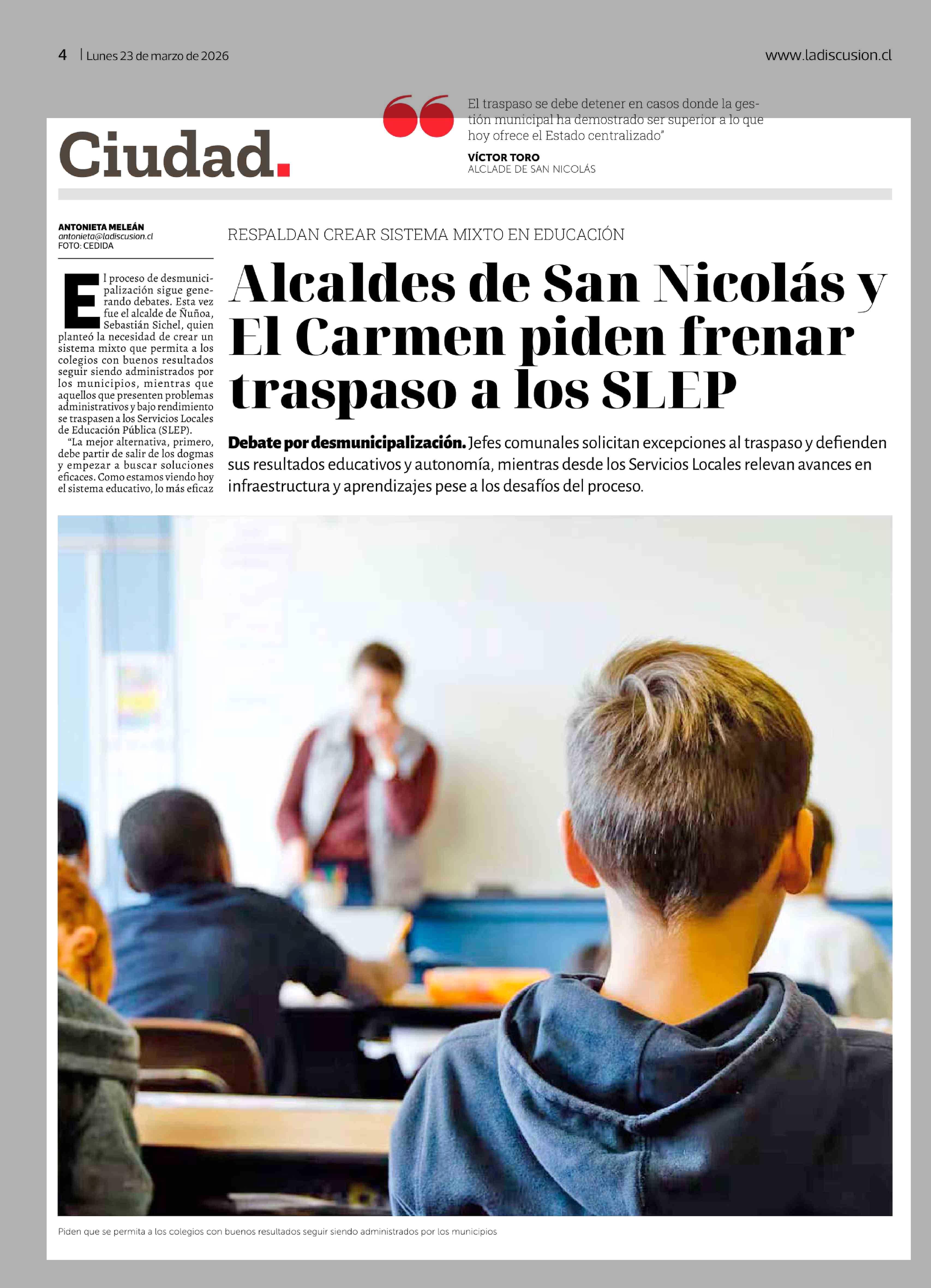 Título: Alcaldes de San Nicolás y El Carmen piden frenar traspaso a los SLEP