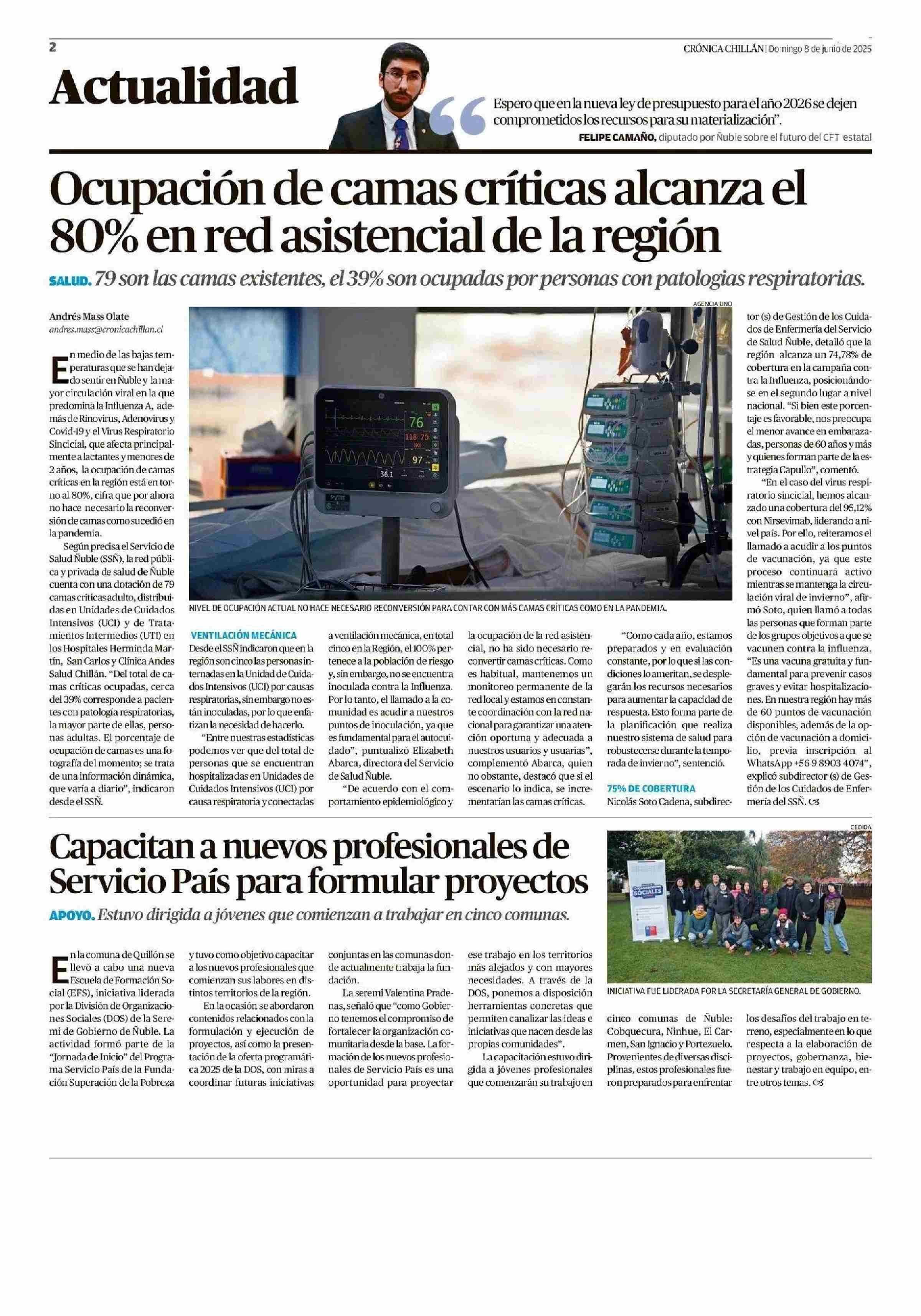 Ocupación de camas críticas alcanza el 80% en red asistencial de la región 08-06-2025 Crónica de Chillán |