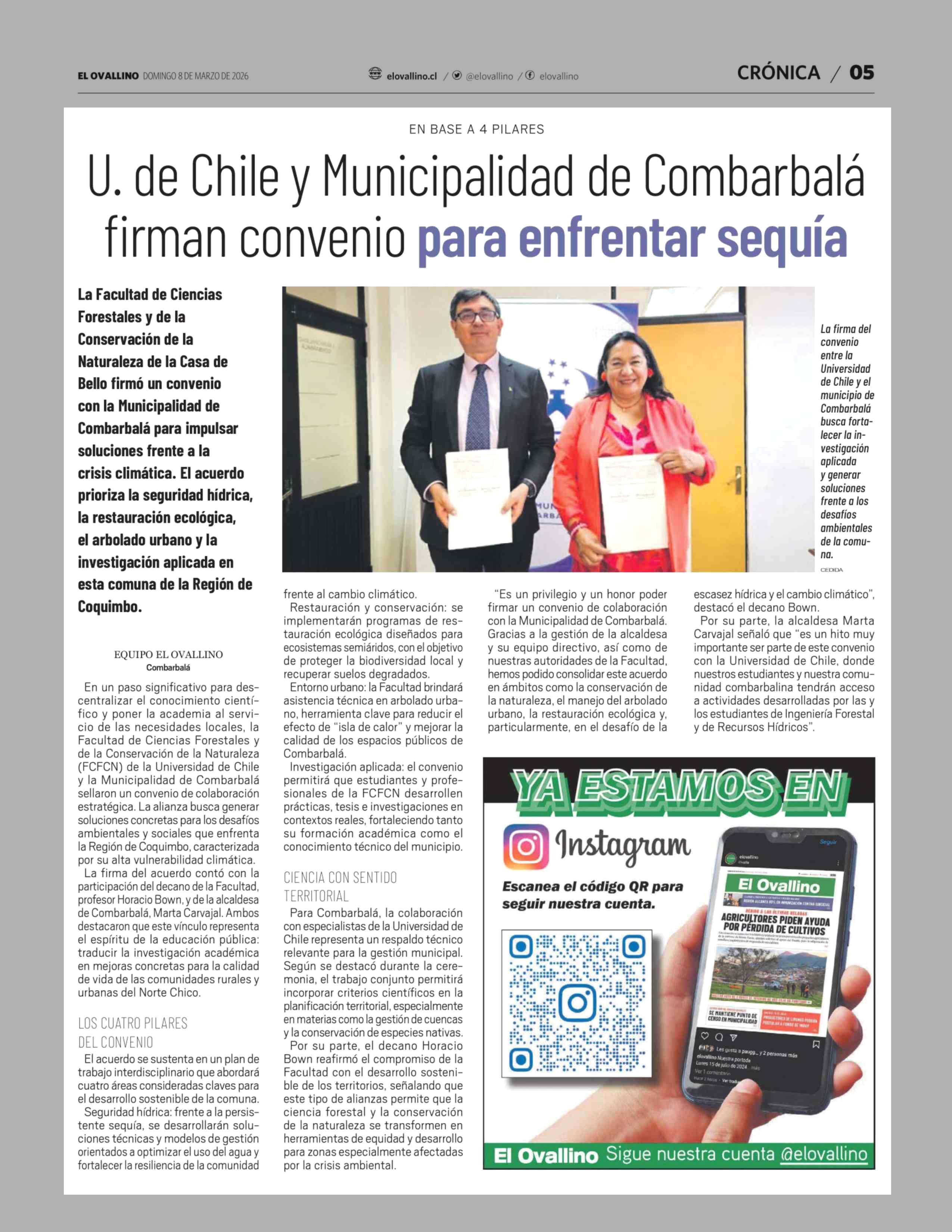 U. de Chile y Municipalidad de Combarbalá firman convenio para enfrentar sequía 08-03-2026 El Ovallino |