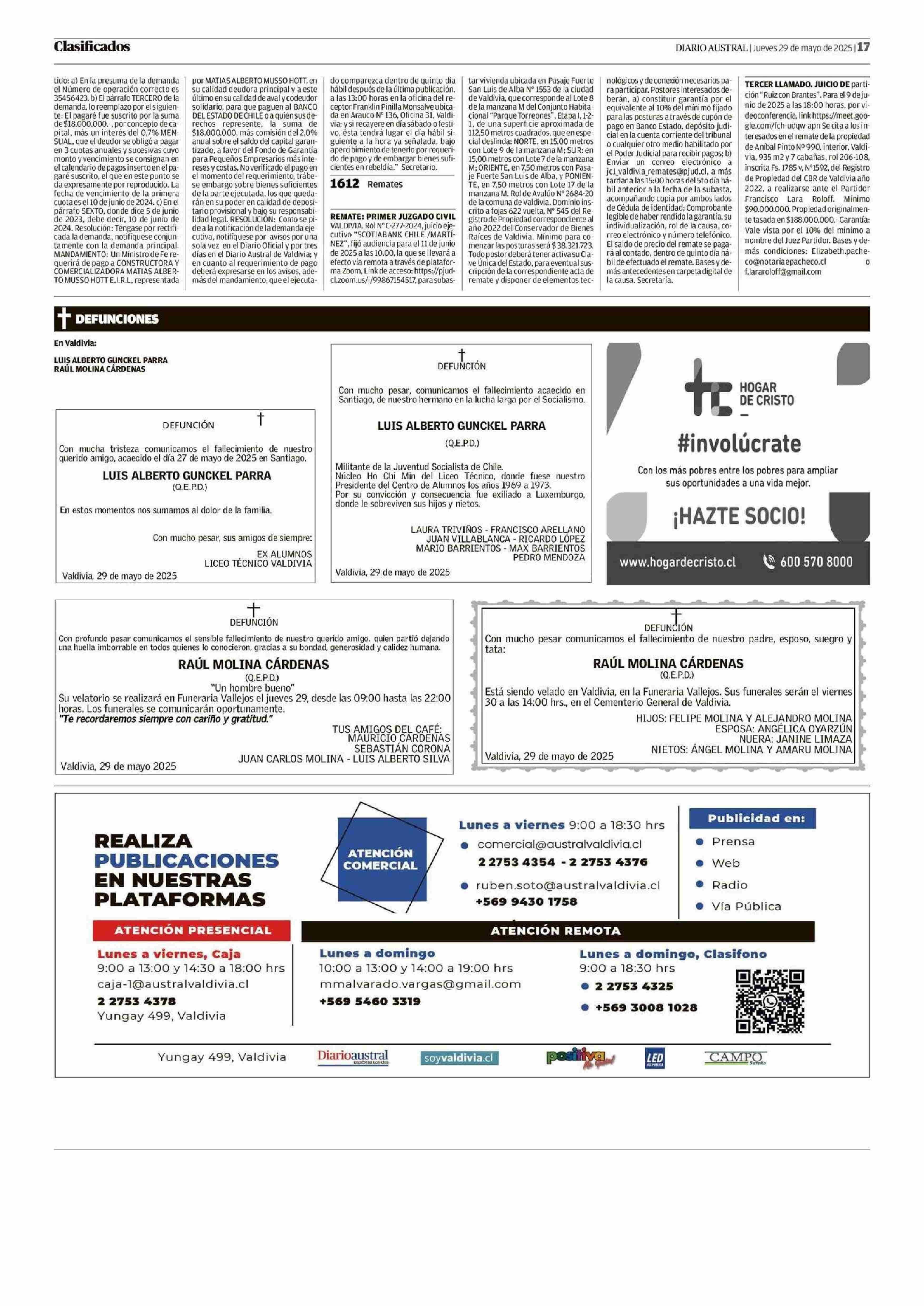 A DEFUNCIONES 29-05-2025 Diario Austral Región de Los Ríos |