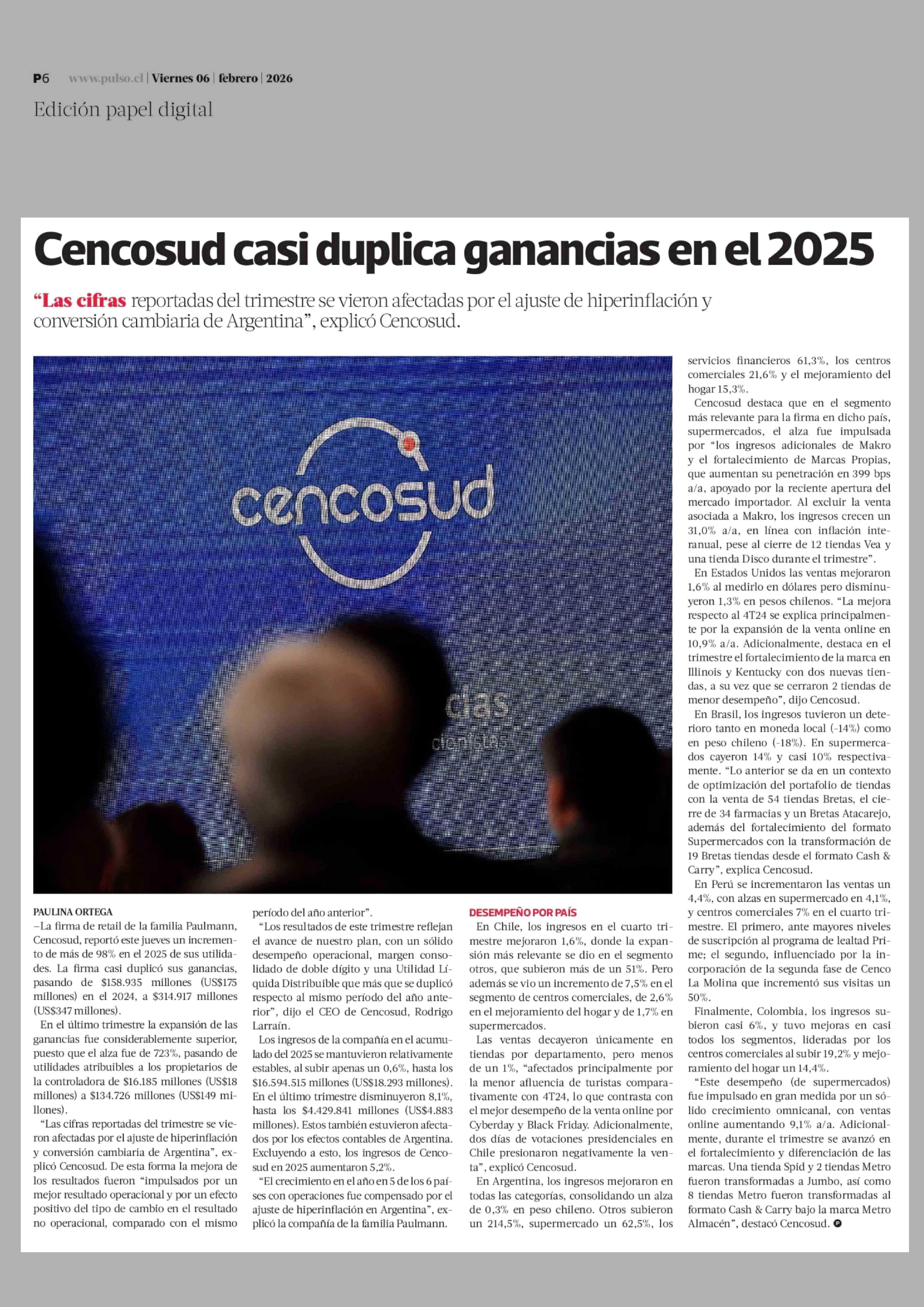 Título: Cencosud casi duplica ganancias en el 2025