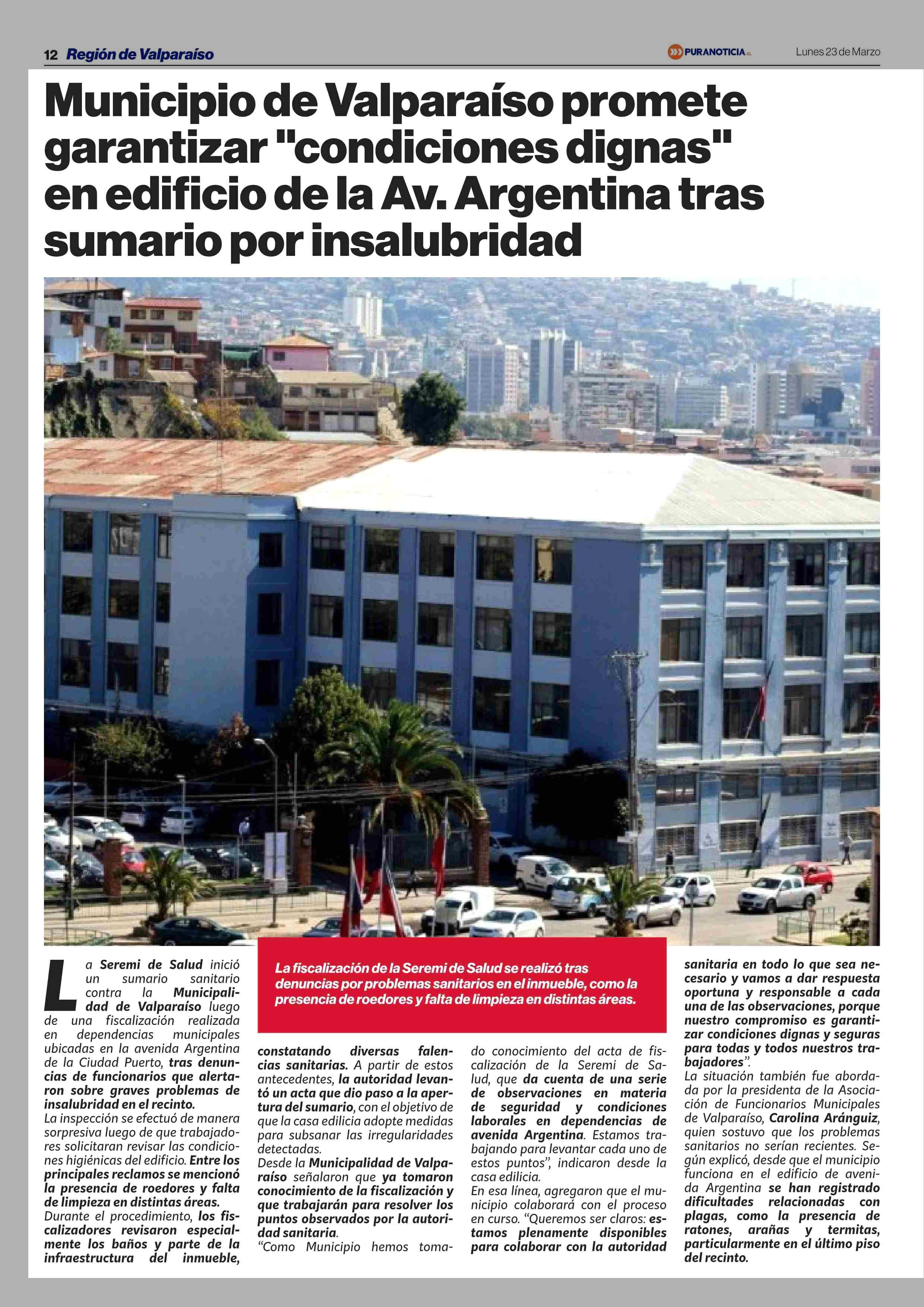 Municipio de Valparaíso promete garantizar "condiciones dignas” en edificio de la Av. Argentina tras sumario por insalubridad 23-03-2026 Puranoticia.cl |