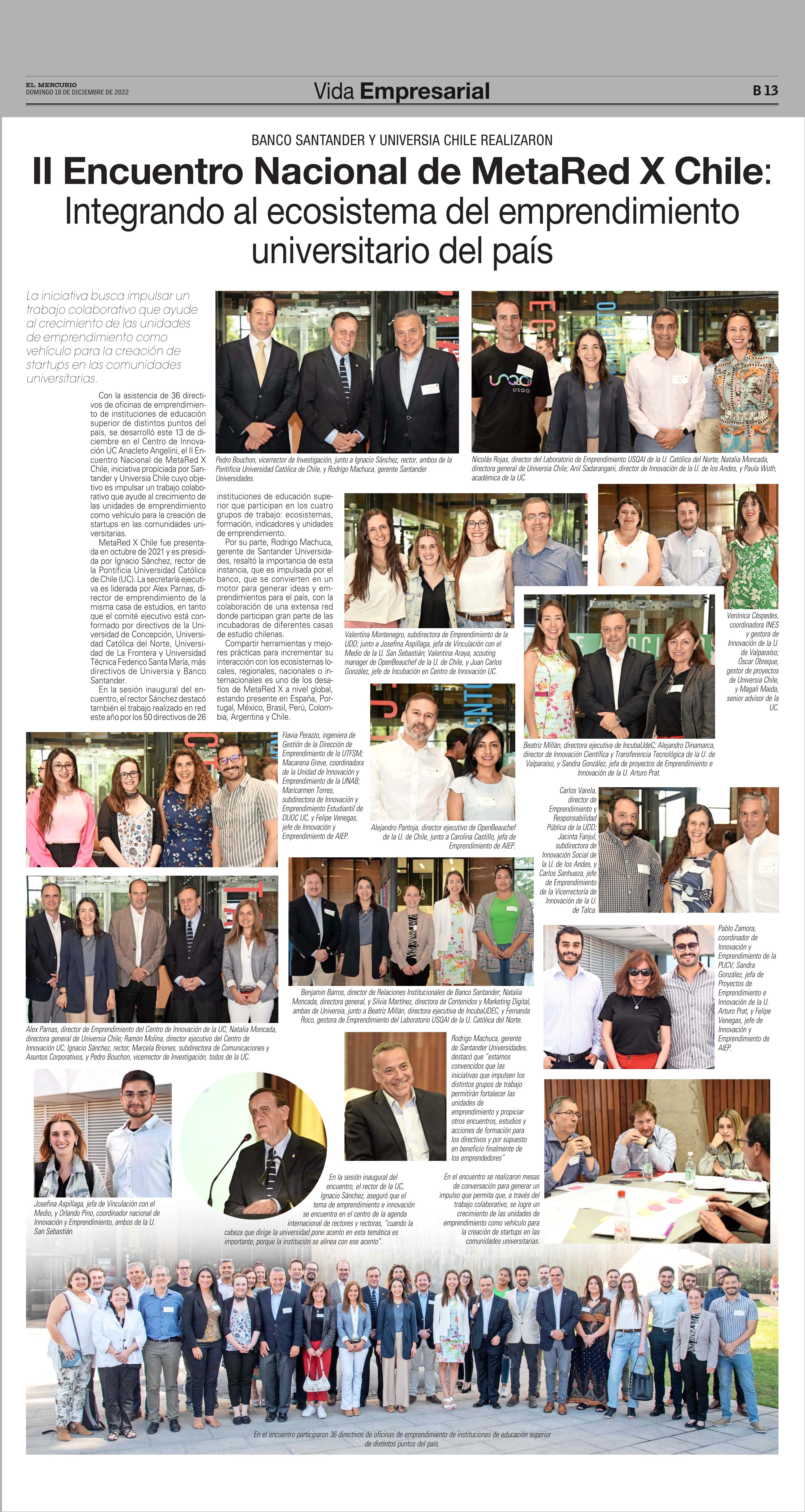 Il Encuentro Nacional de Meta Red X Chile: Integrando al ecosistema del emprendimiento universitario del país 18-12-2022 El Mercurio |