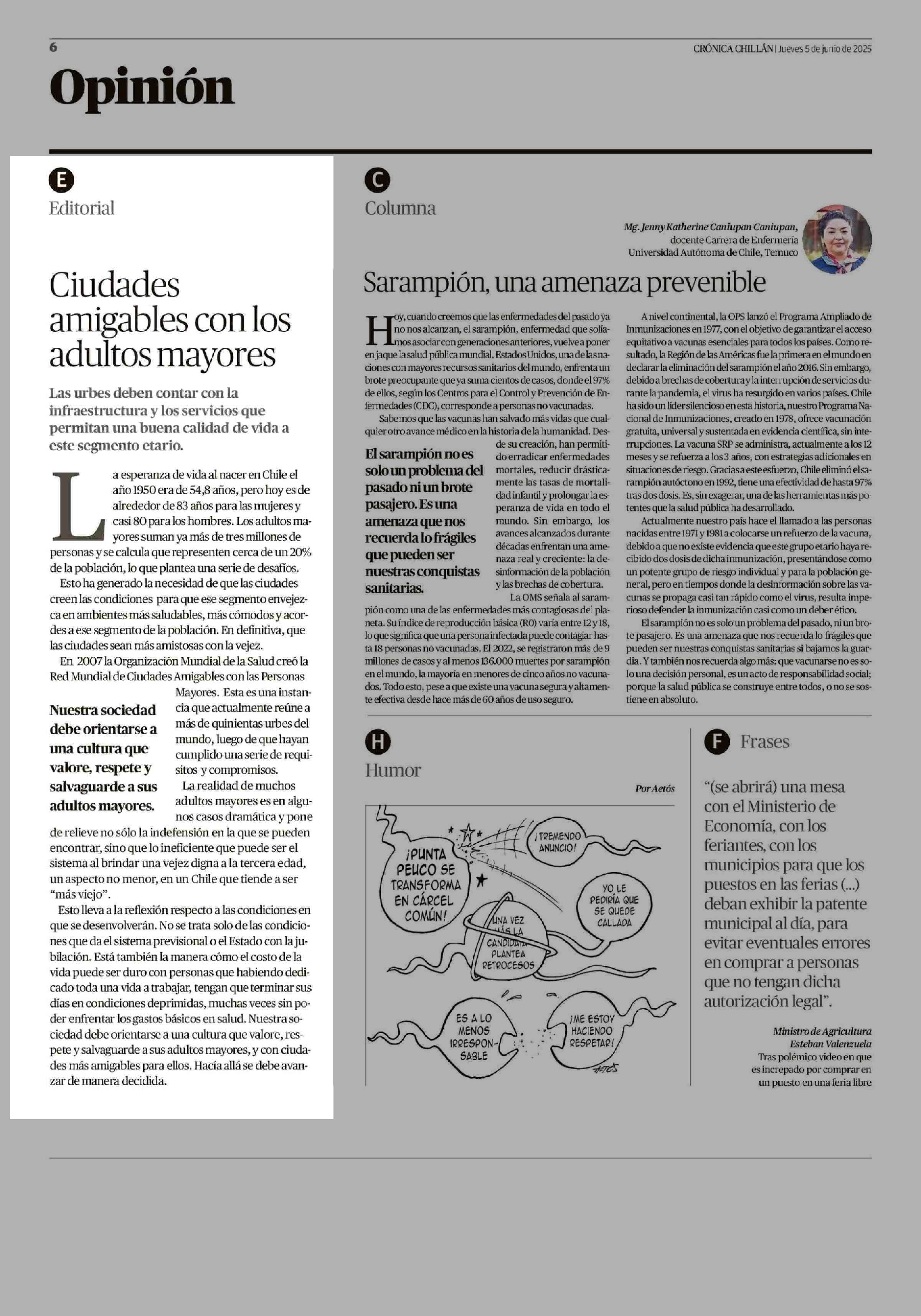 EDITORIAL: Ciudades amigables con los adultos mayores 05-06-2025 Crónica de Chillán |