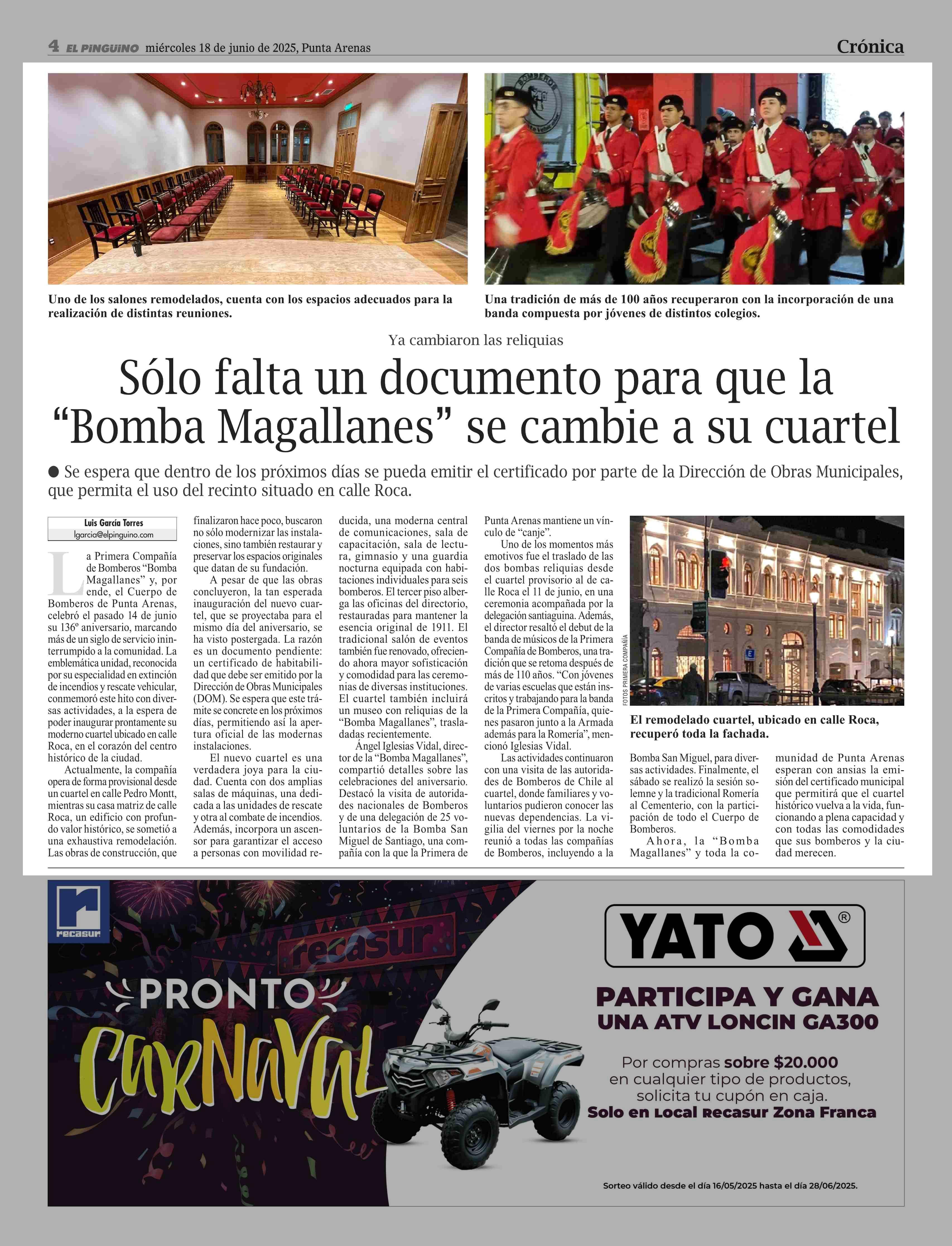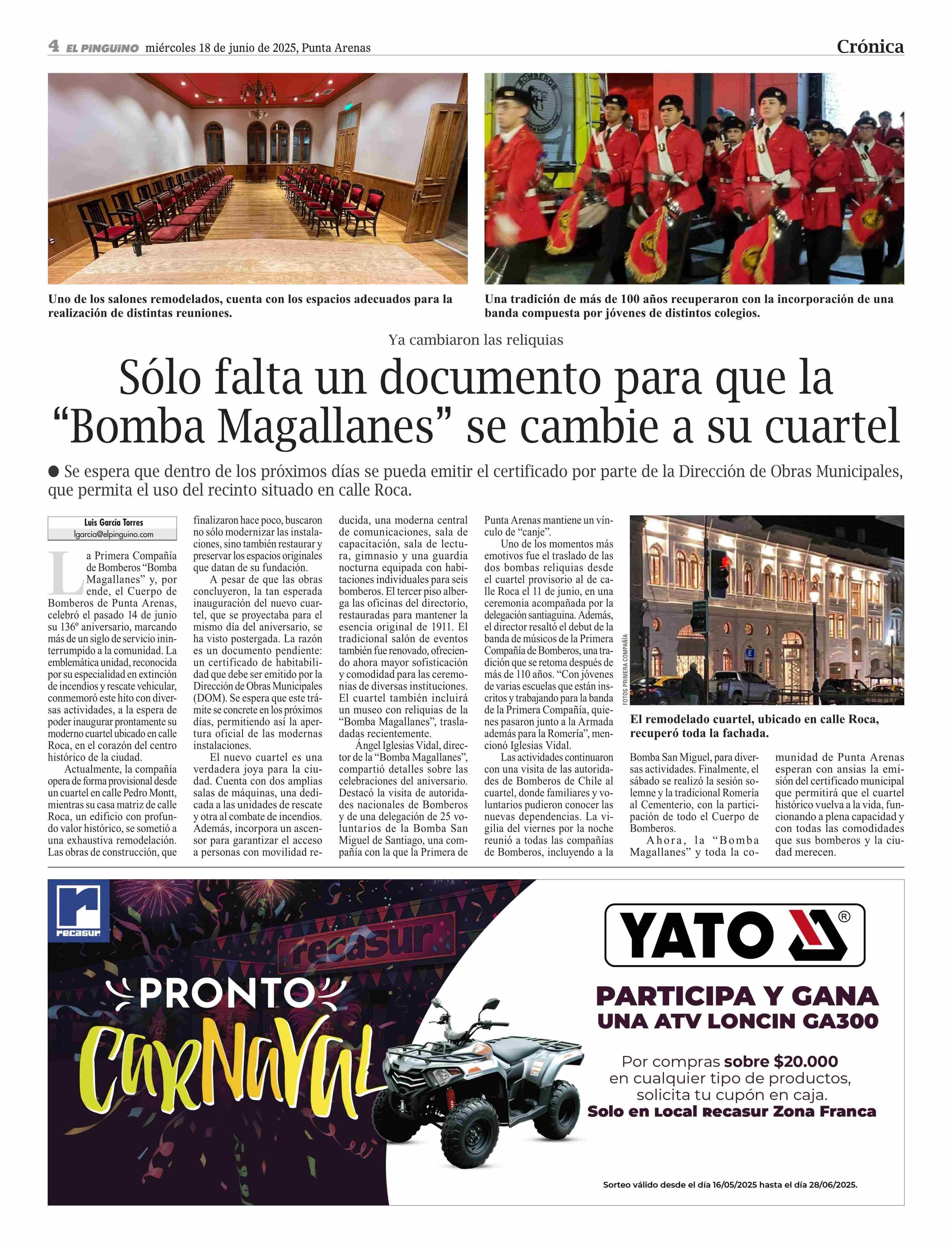 Sólo falta un documento para que la Bomba Magallanes se cambie a su cuartel 18-06-2025 El Pingüino |