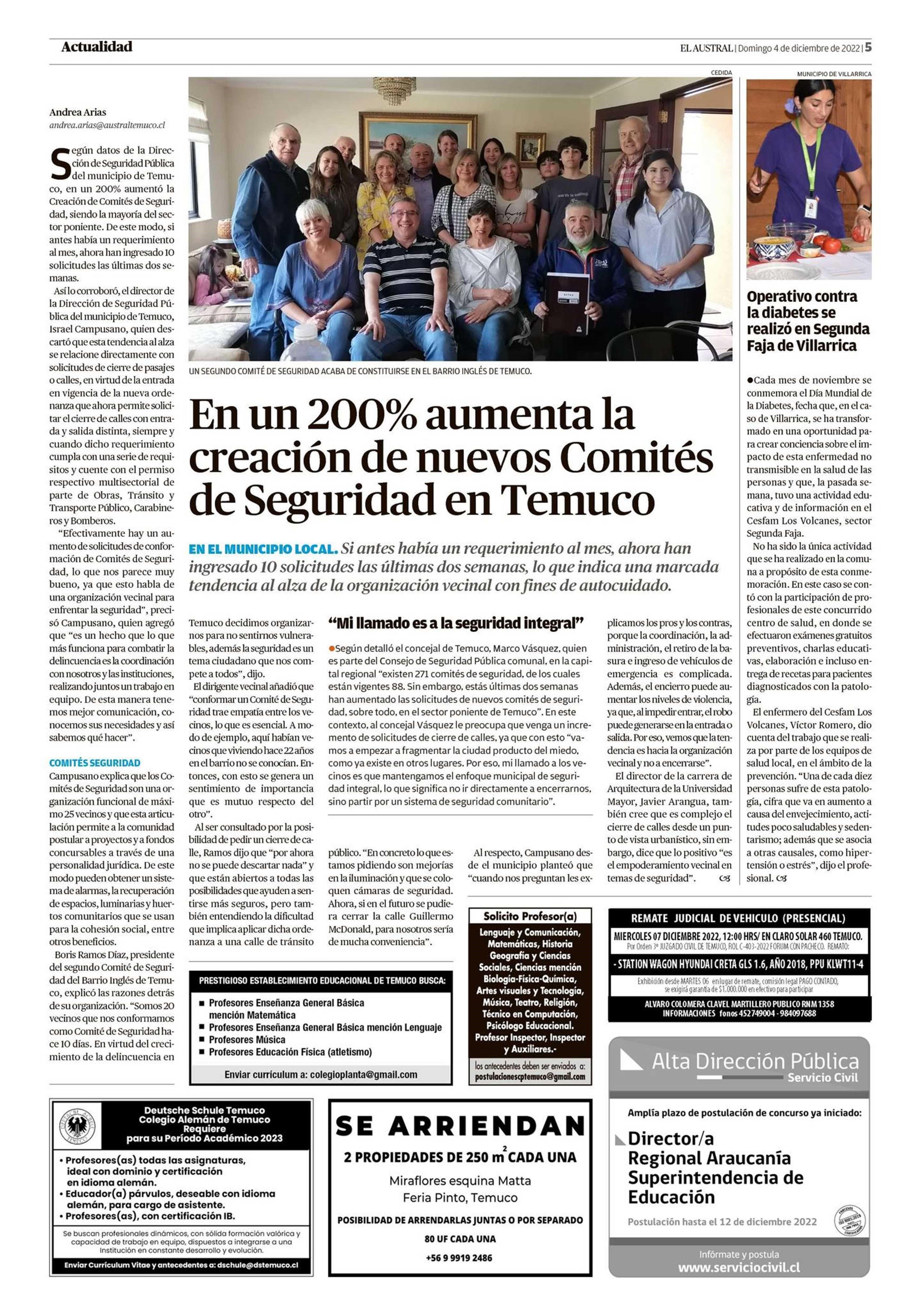 En un 200% aumenta la creación de nuevos Comités de Seguridad en Temuco 04-12-2022 El Austral de la Araucanía |