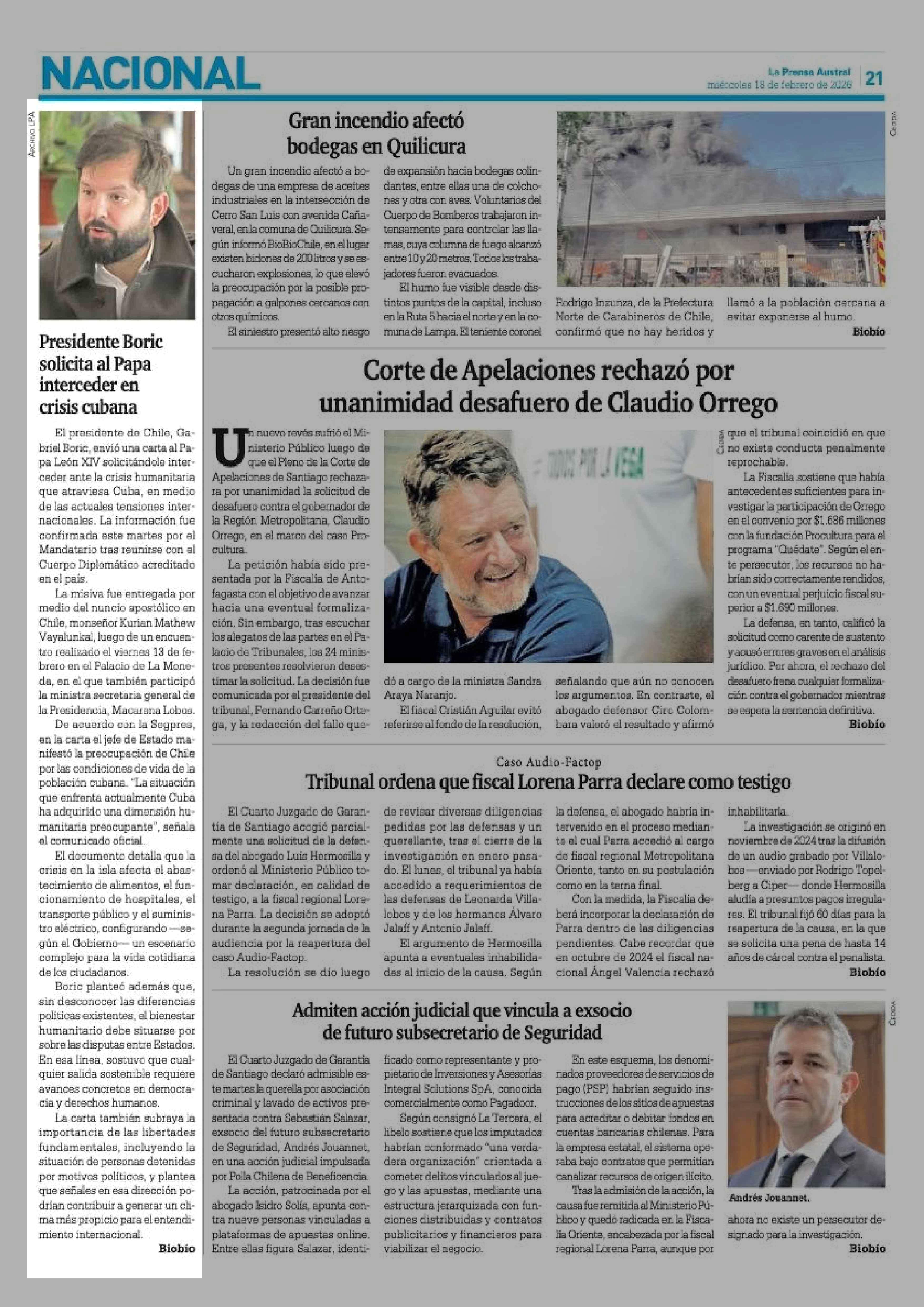 Presidente Boric solicita al Papa interceder en crisis cubana 18-02-2026 La Prensa Austral |