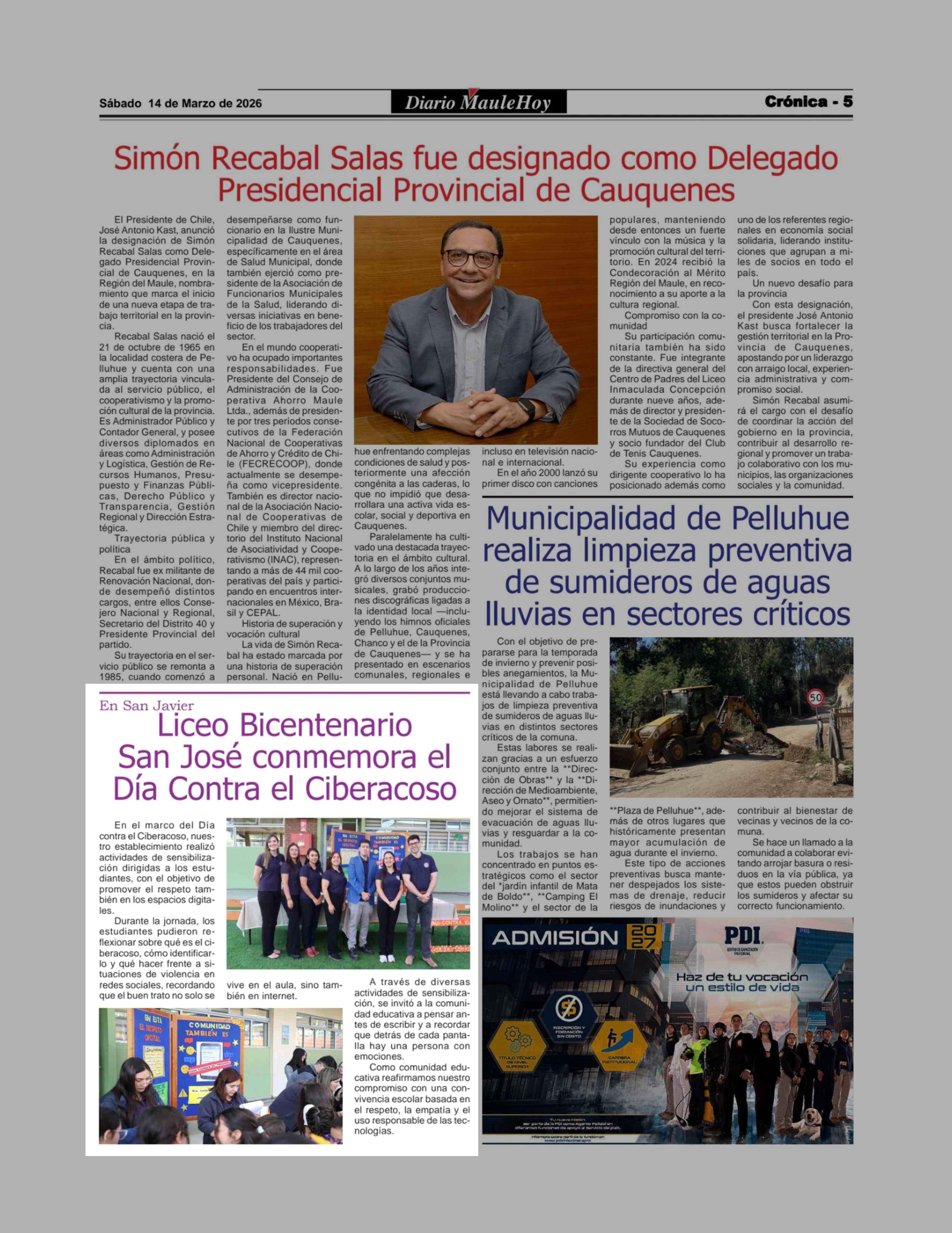 | Fecha: | 14-03-2026 | Sector: | Noticia general | Región: | Región del Maule |
