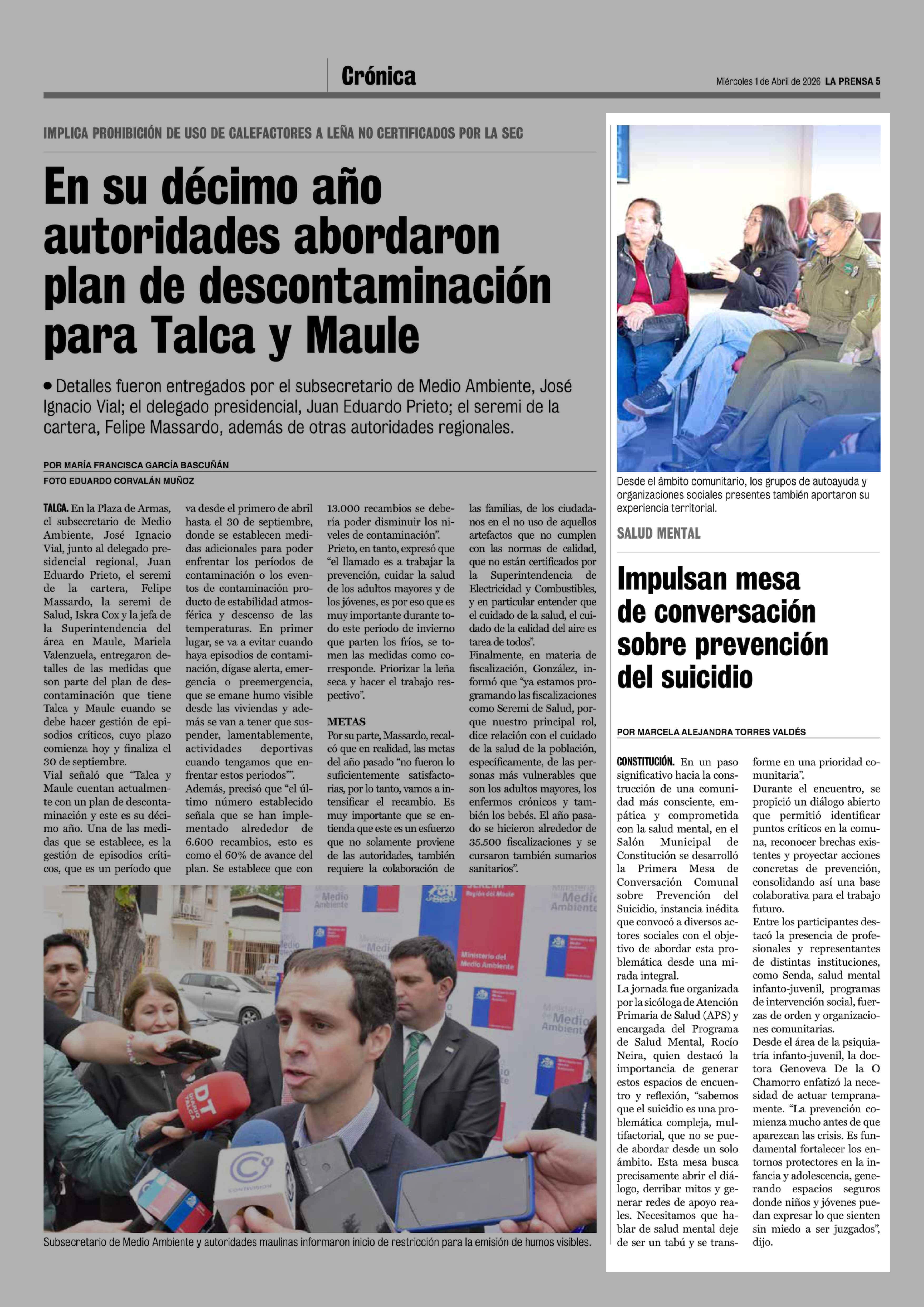 Impulsan mesa de conversación sobre prevención del suicidio 01-04-2026 La Prensa de Curicó |