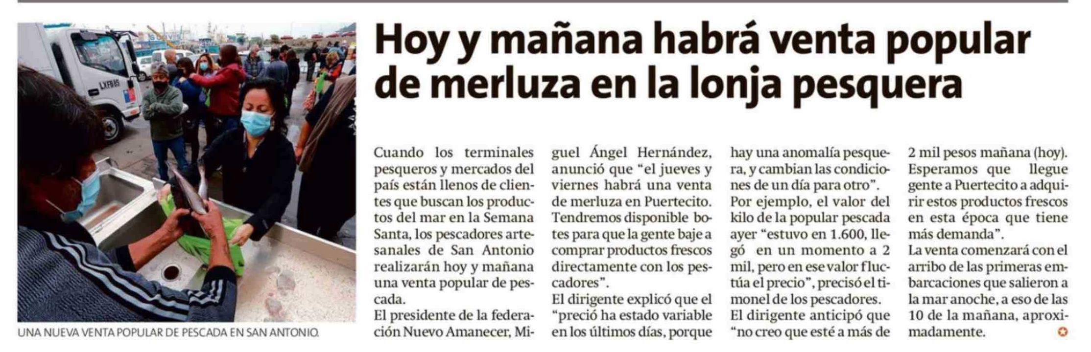 Título: Hoy y mañana habrá venta popular de merluza en la lonja pesquera