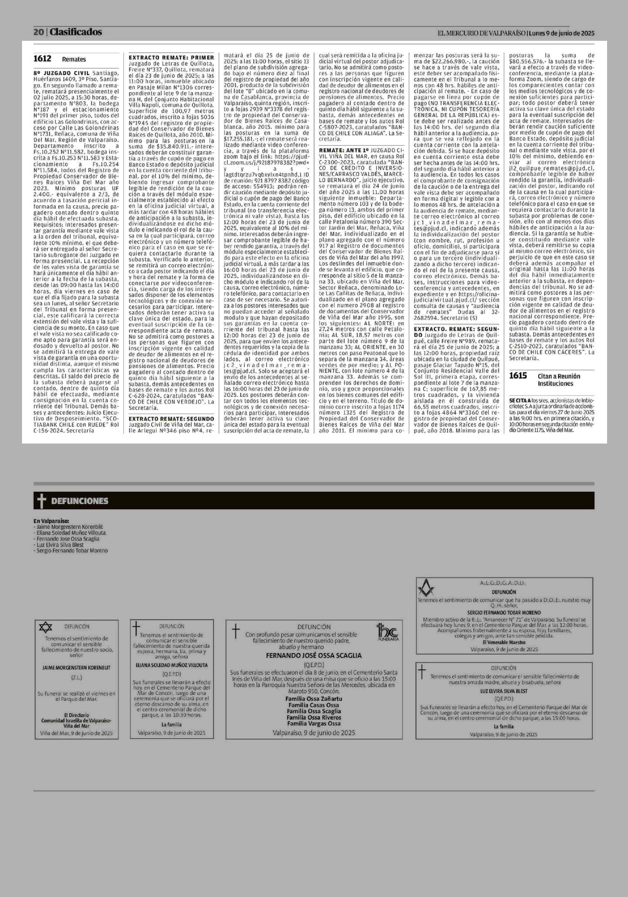 Extractos: Clasificados 09-06-2025 El Mercurio de Valparaíso |