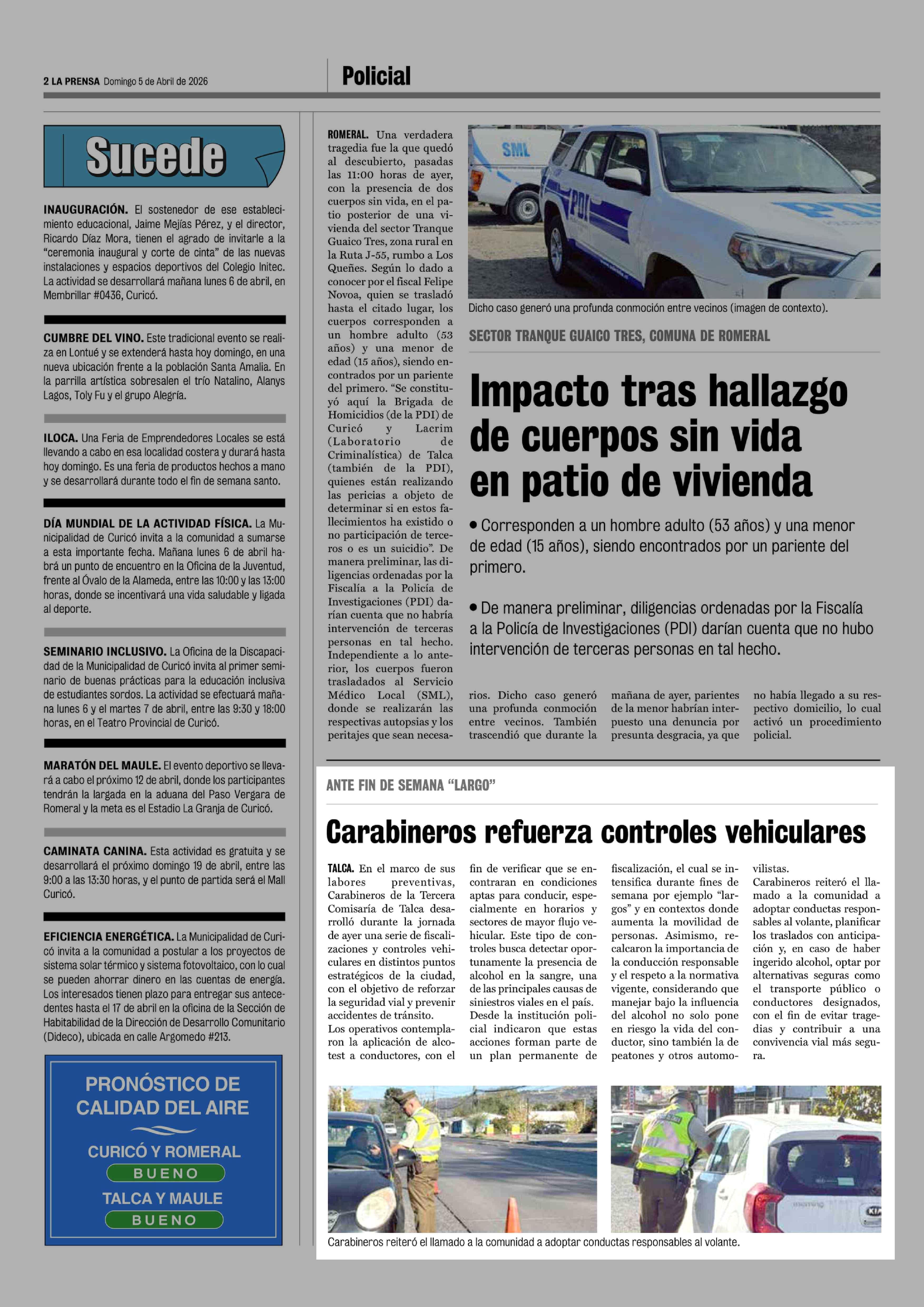 Fuente: La Prensa de Curicó (La Prensa de Curicó) Página(s): 2