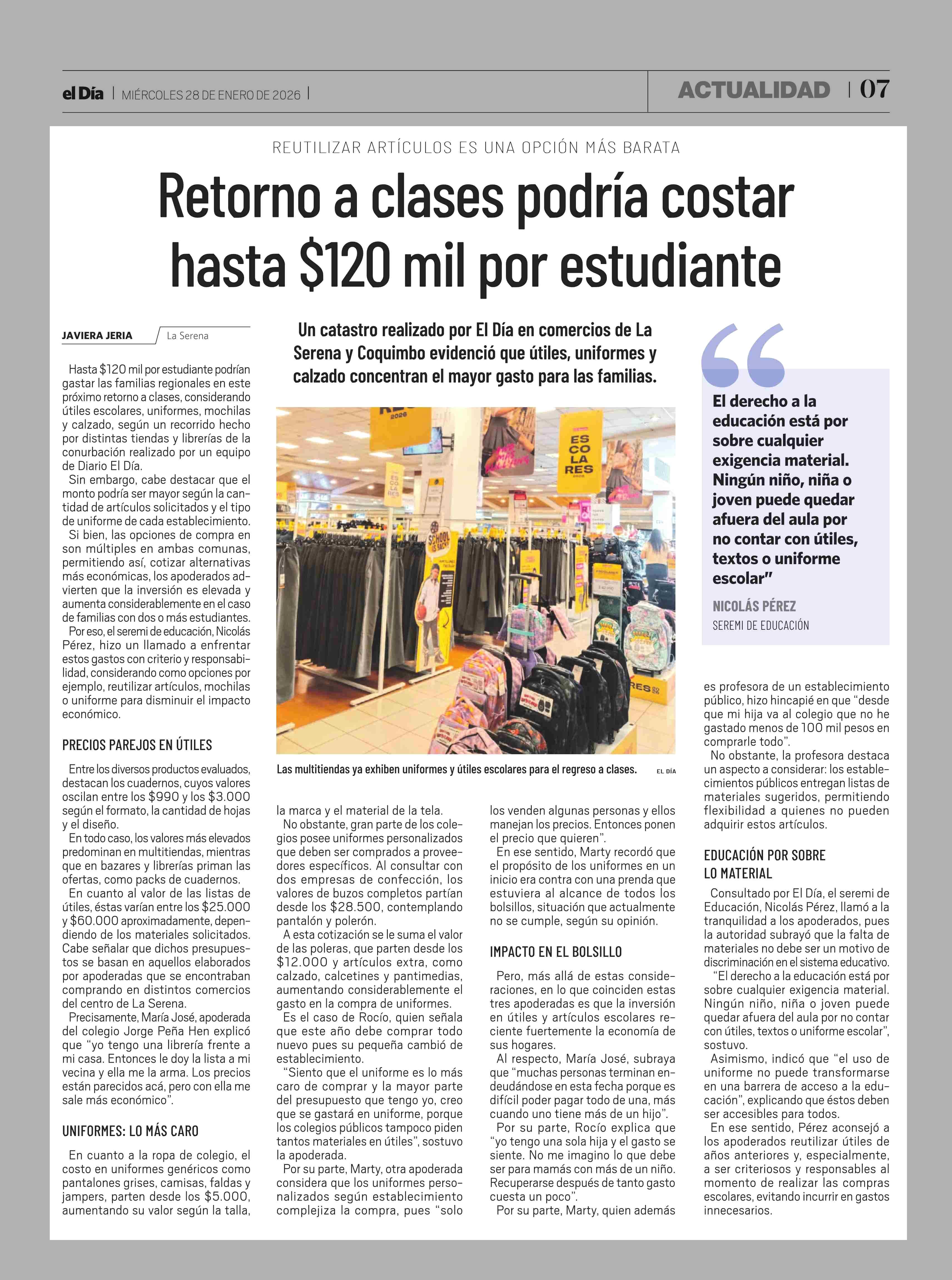 Título: Retorno a clases podría costar hasta $120 mil por estudiante