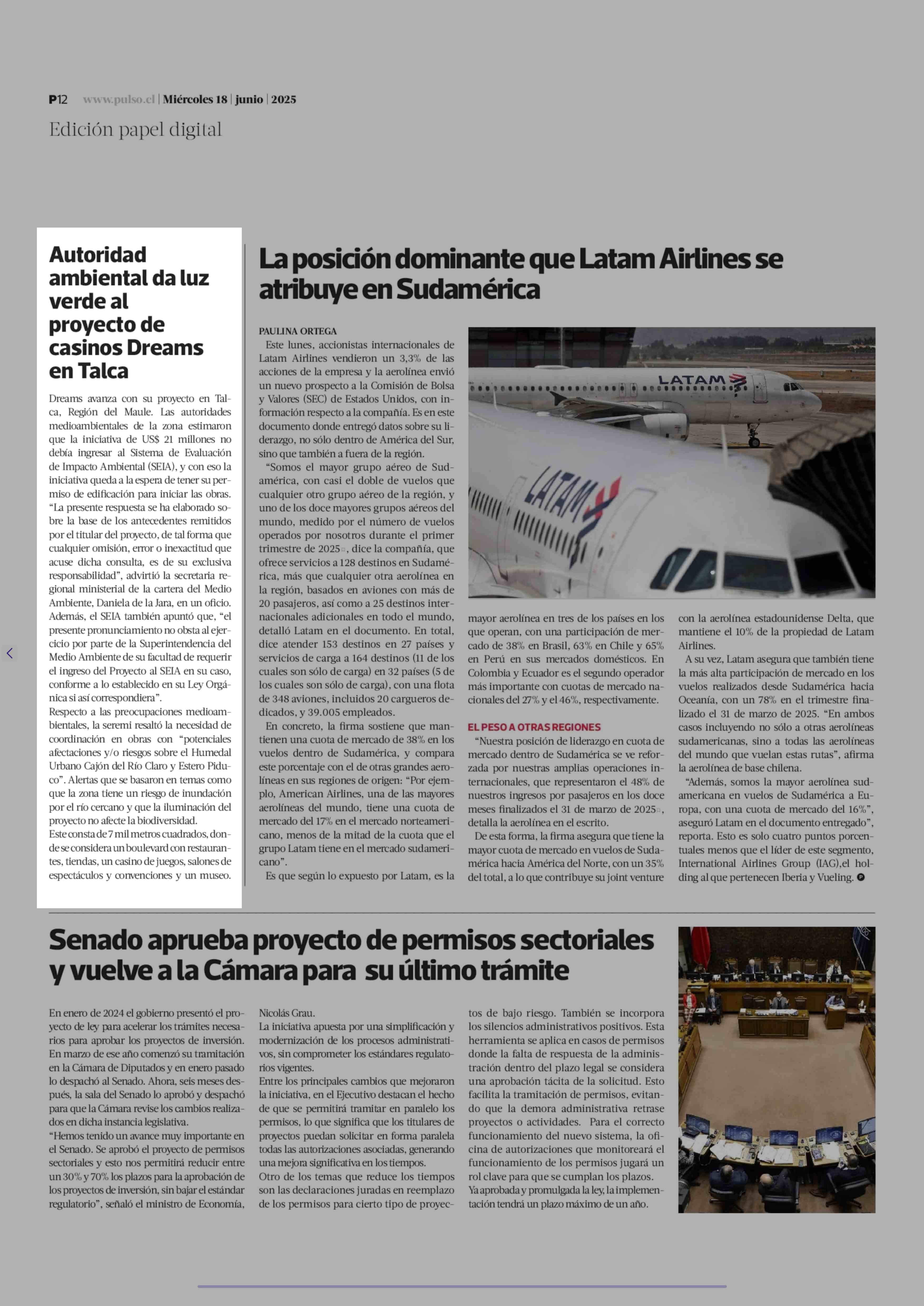 Autoridad ambiental da luz verde al proyecto de casinos Dreams en Talca 18-06-2025 La Tercera |