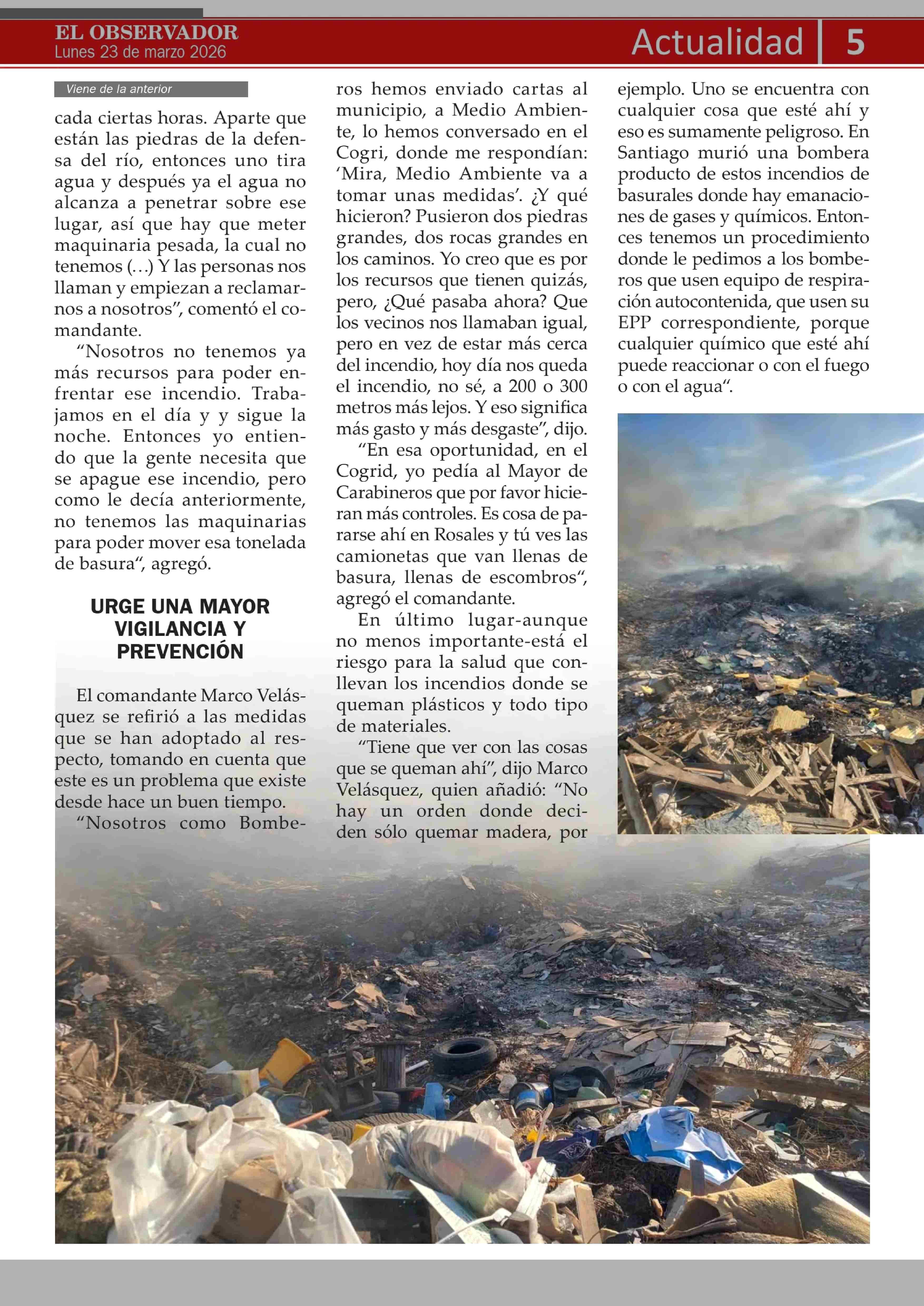Quillota: Bomberos agotados tras incendio de varios días en el borde del río 23-03-2026 El Observador Vespertino |