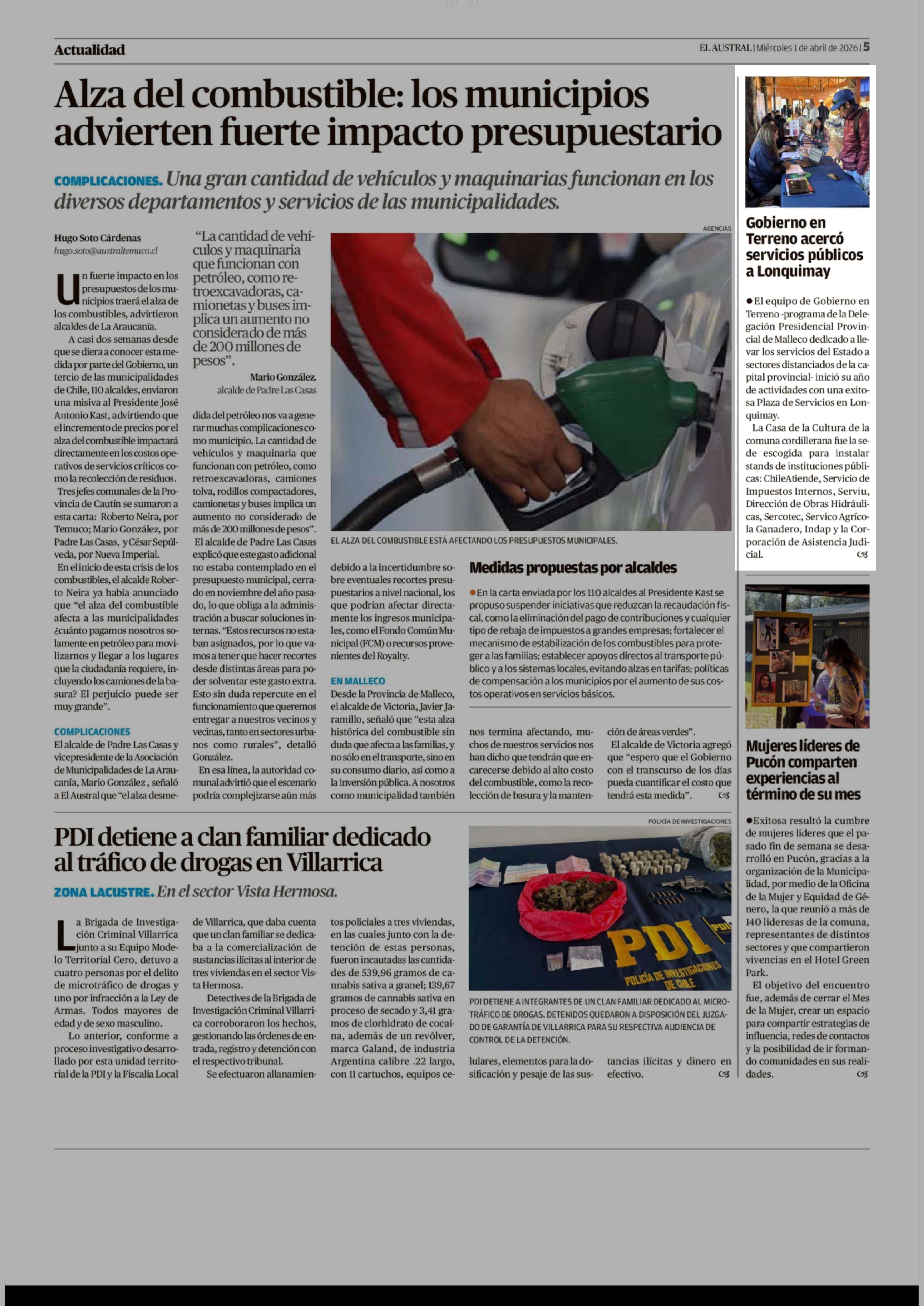 | Fecha: | 01-04-2026 | Sector: | Noticia general | Región: | Región de la Araucanía |
