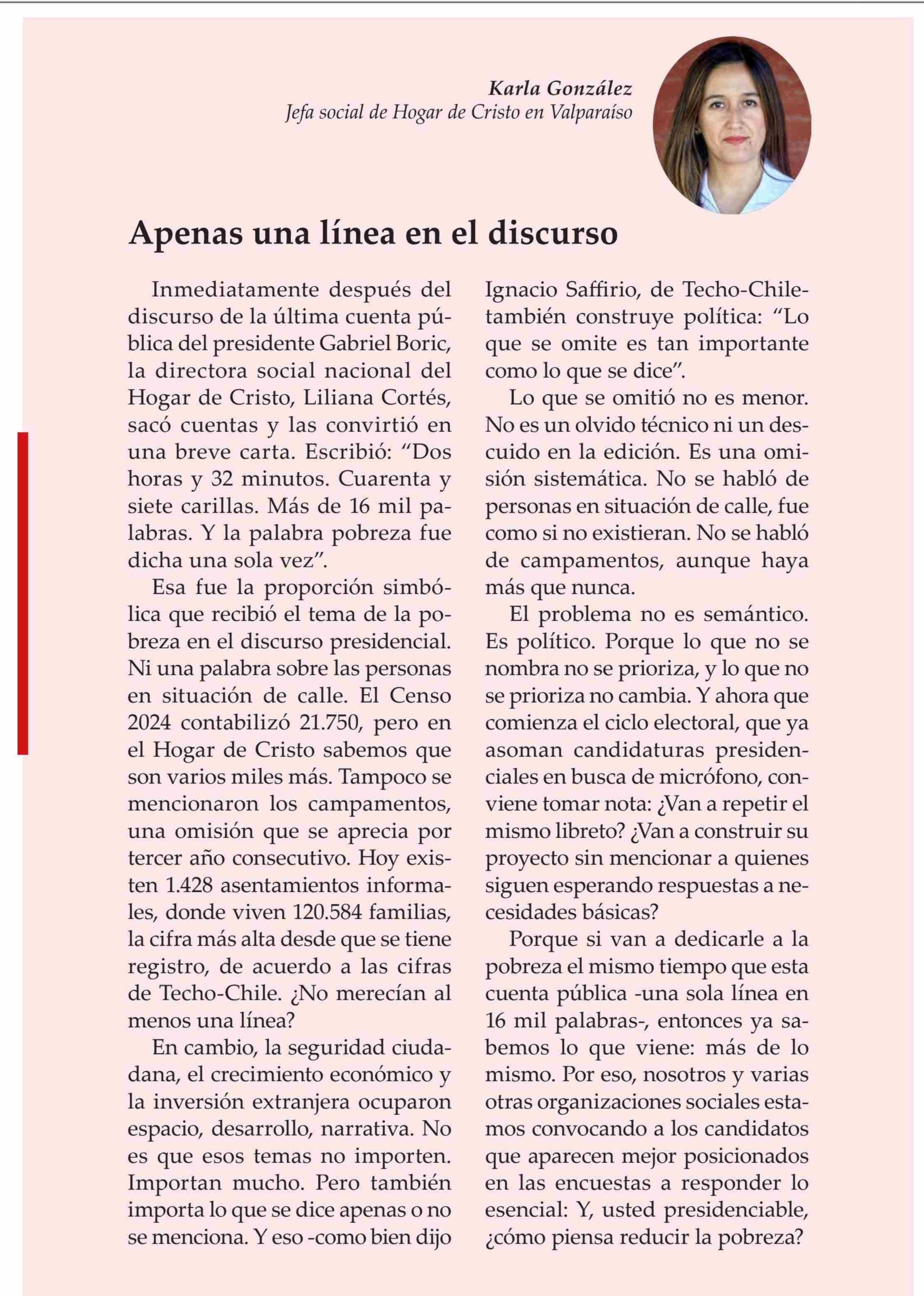 COLUMNAS DE OPINIÓN: Apenas una línea en el discurso 17-06-2025 El Observador |