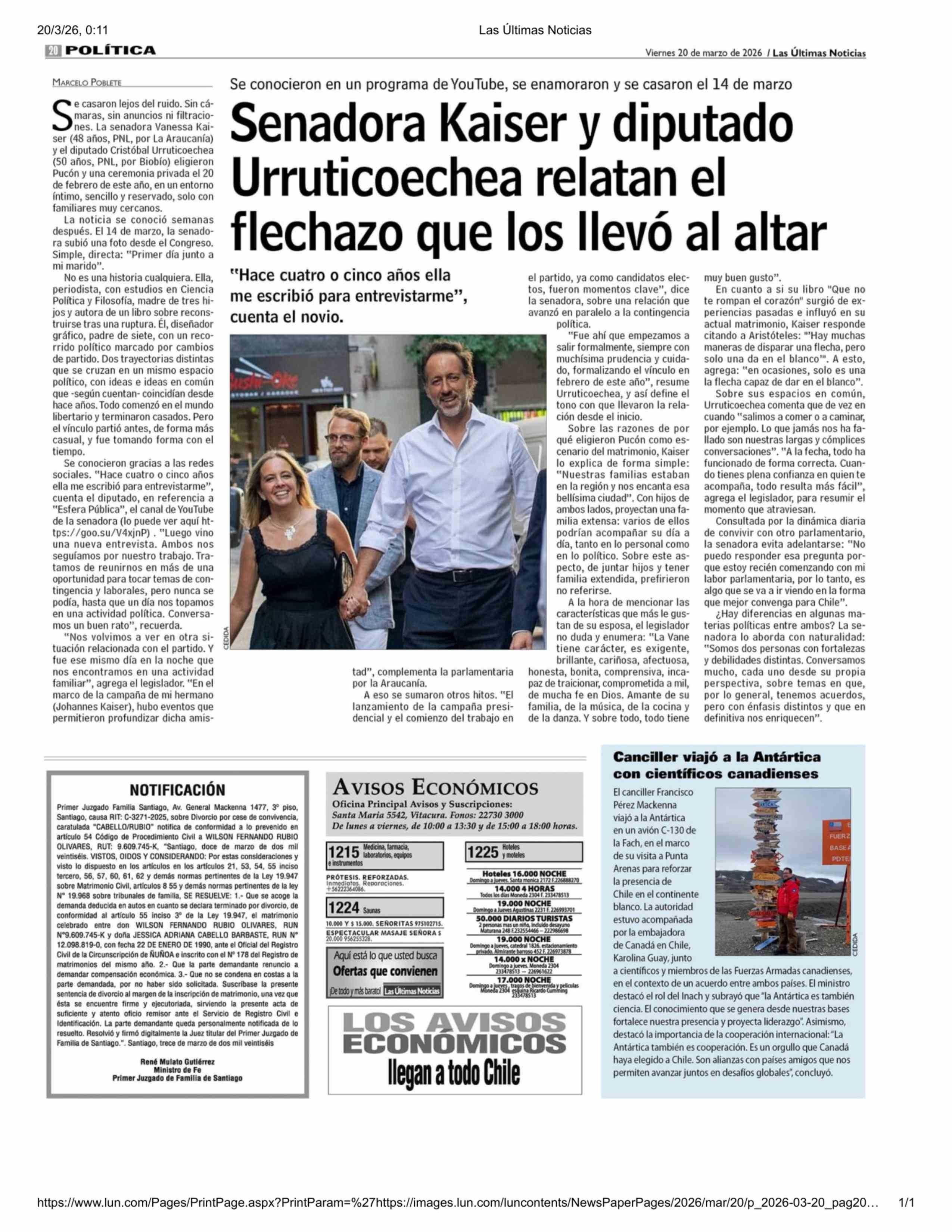 Fecha: 20-03-2026 Sector: Noticia general Región: Región Metropolitana de Santiago