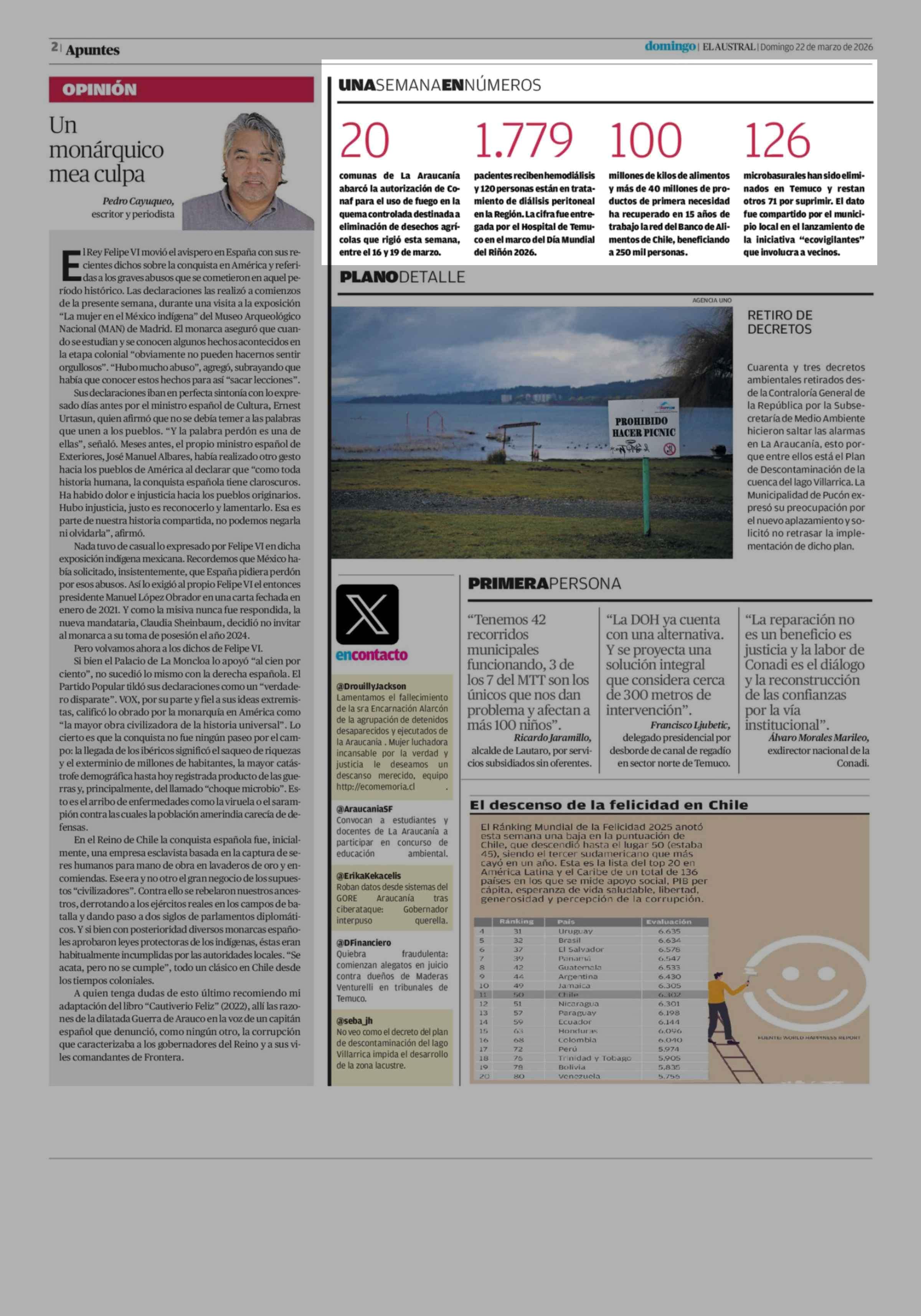 UNA SEMANA EN NÚMEROS 22-03-2026 El Austral de la Araucanía |