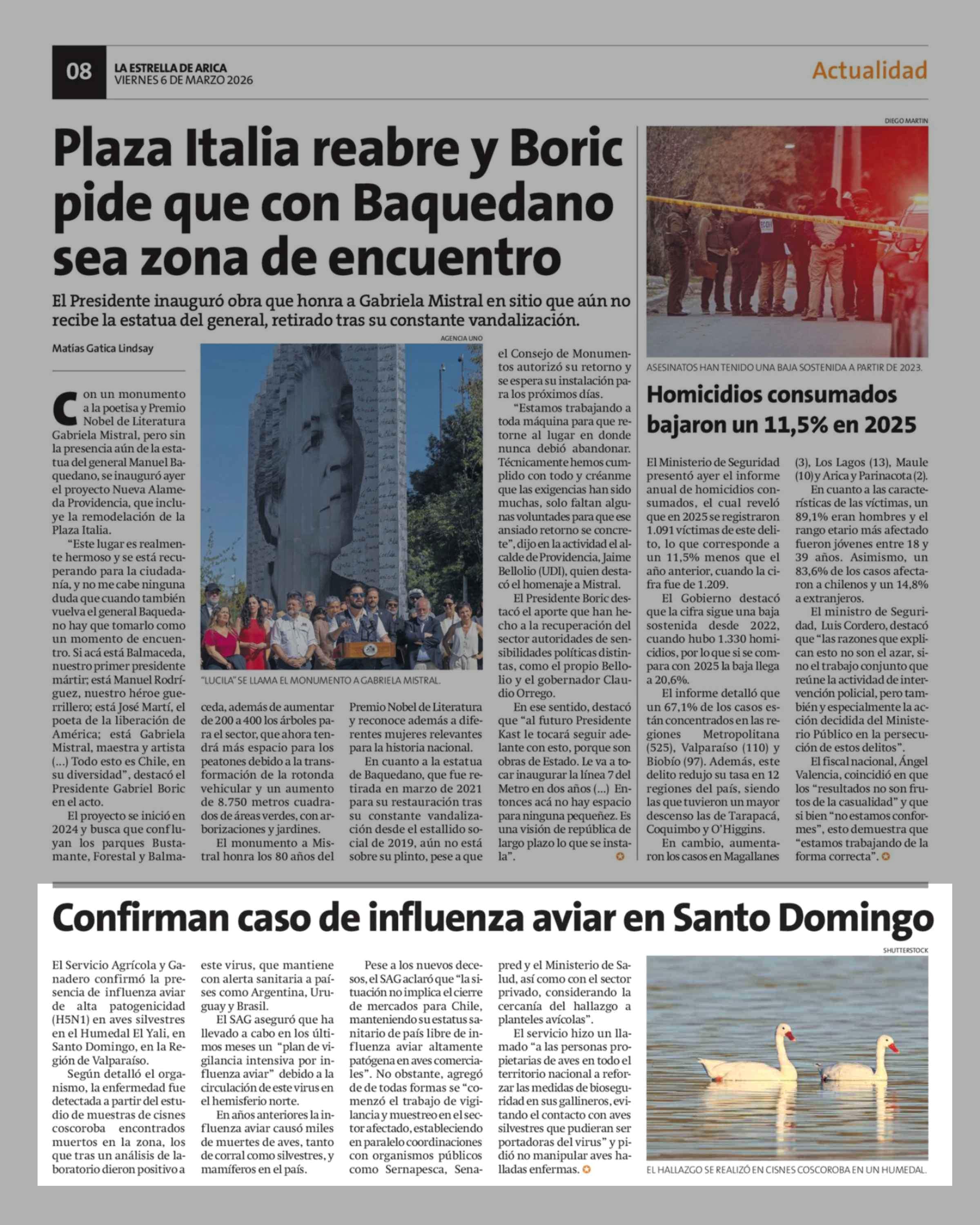 Confirman caso de influenza aviar en Santo Domingo 06-03-2026 La Estrella de Arica |