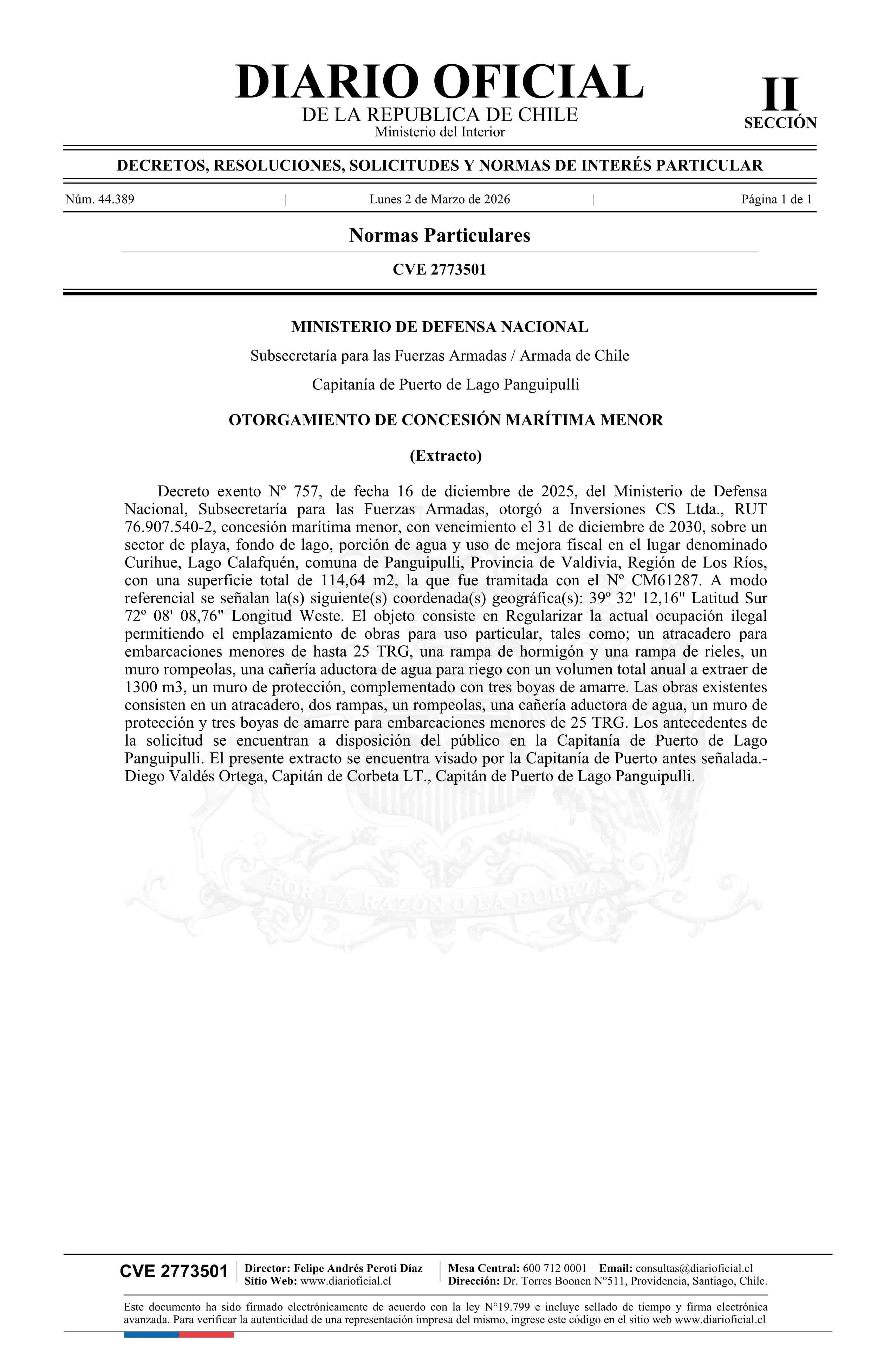 | Título: | Extracto de decreto exento número 757, de 2025.- Otorgamiento de concesión marítima menor |