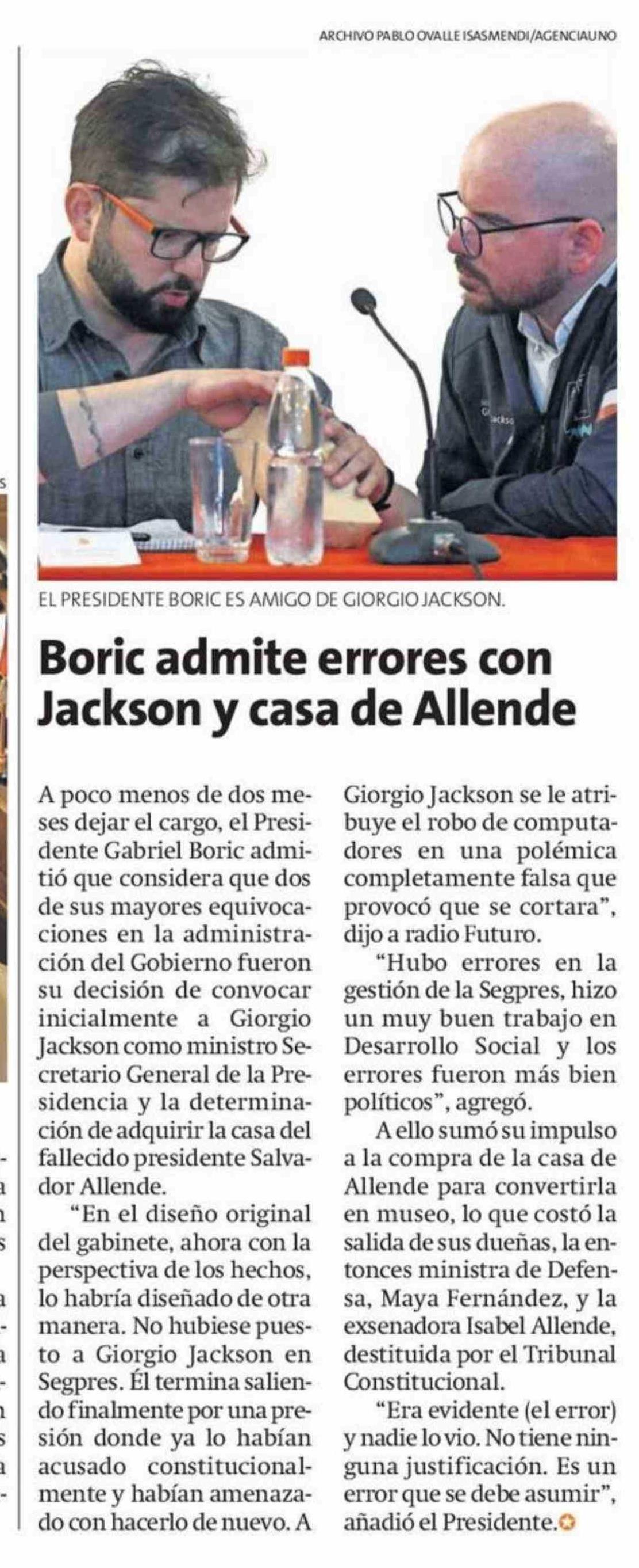 | Título: | Boric admite errores con Jackson y casa de Allende |