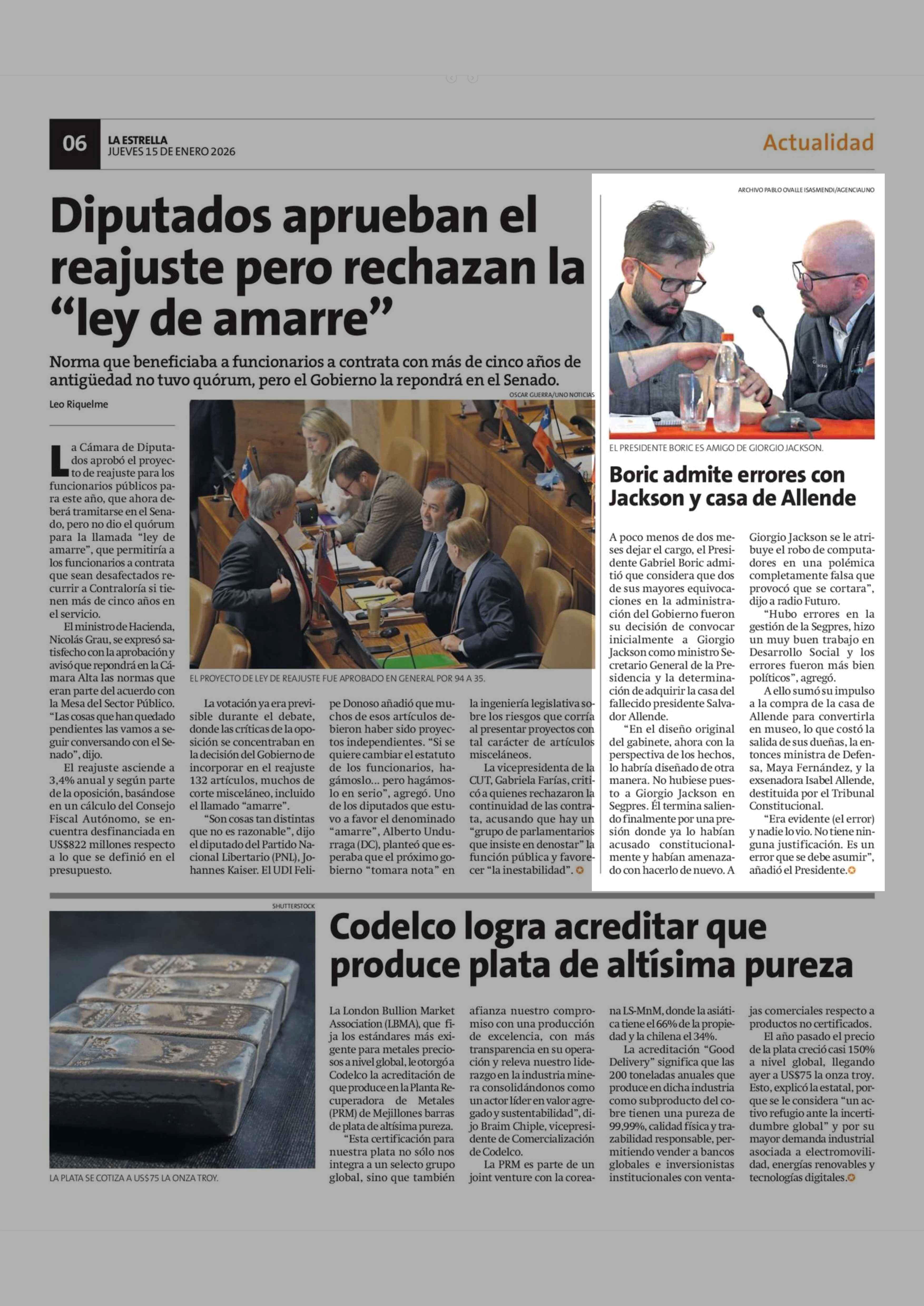 Boric admite errores con Jackson y casa de Allende 15-01-2026 La Estrella de Antofagasta |